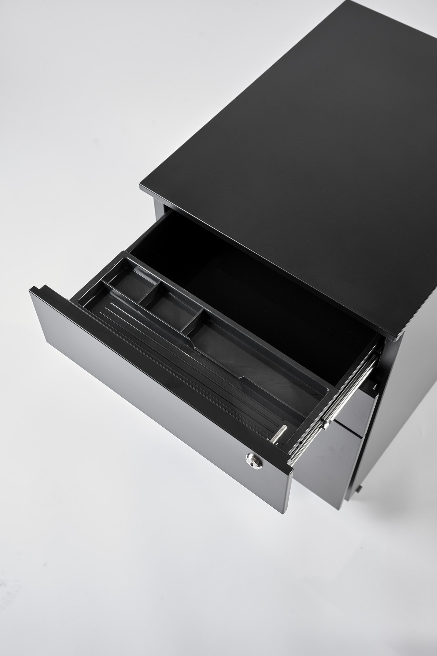 Drawer Configuration – 2 pen drawers and one file drawer.