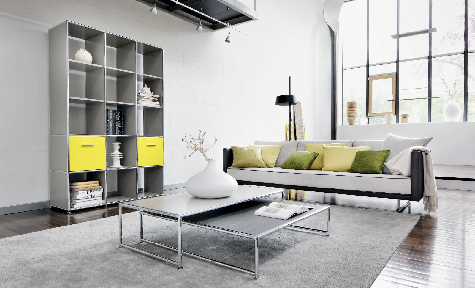 Modul space is an impressive building-block system with its almost unlimited modularity. The high-quality tubes, connectors and panels form the basis of a system that can be used to create a wide range of different furniture and furnishing solutions.