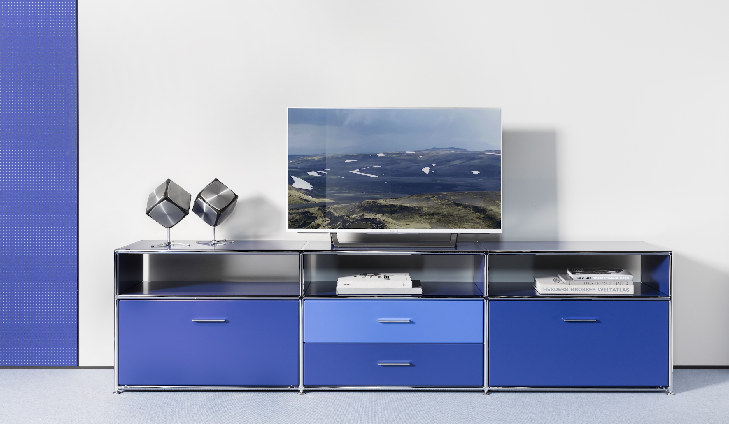 Modul Space low storage by Bosse is a made to measure low cupboard in which the storage space is distributed horizontally. The design-low board can be used flexibly.