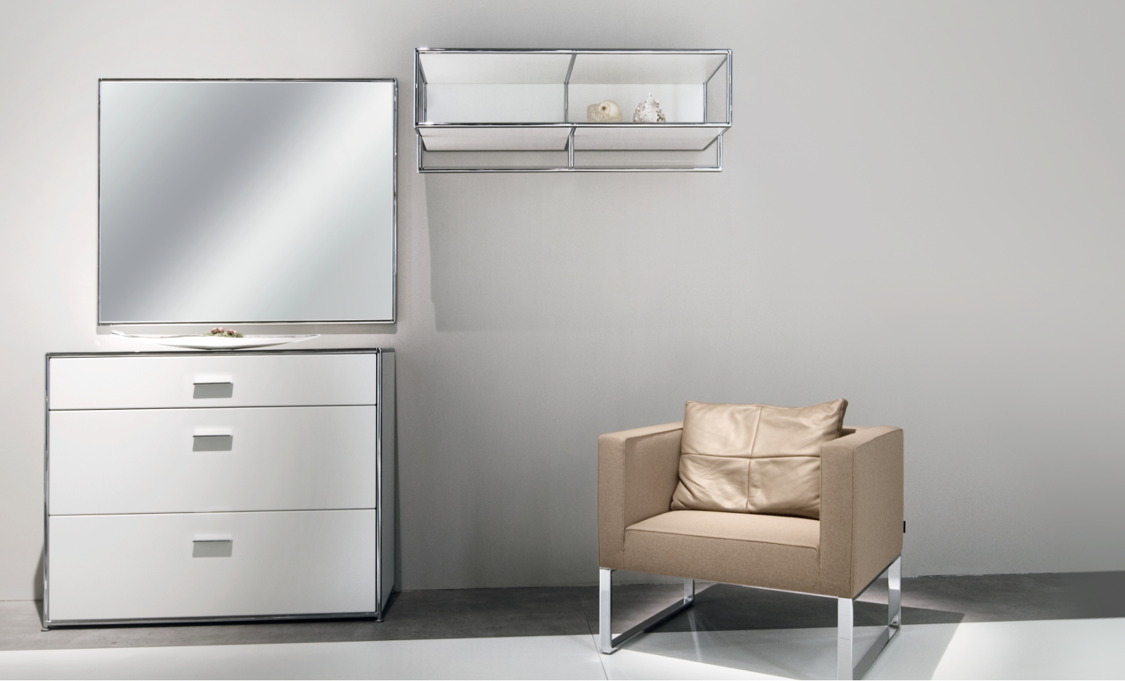 Modul space is an impressive building-block system with its almost unlimited modularity. The high-quality tubes, connectors and panels form the basis of a system that can be used to create a wide range of different furniture and furnishing solutions.