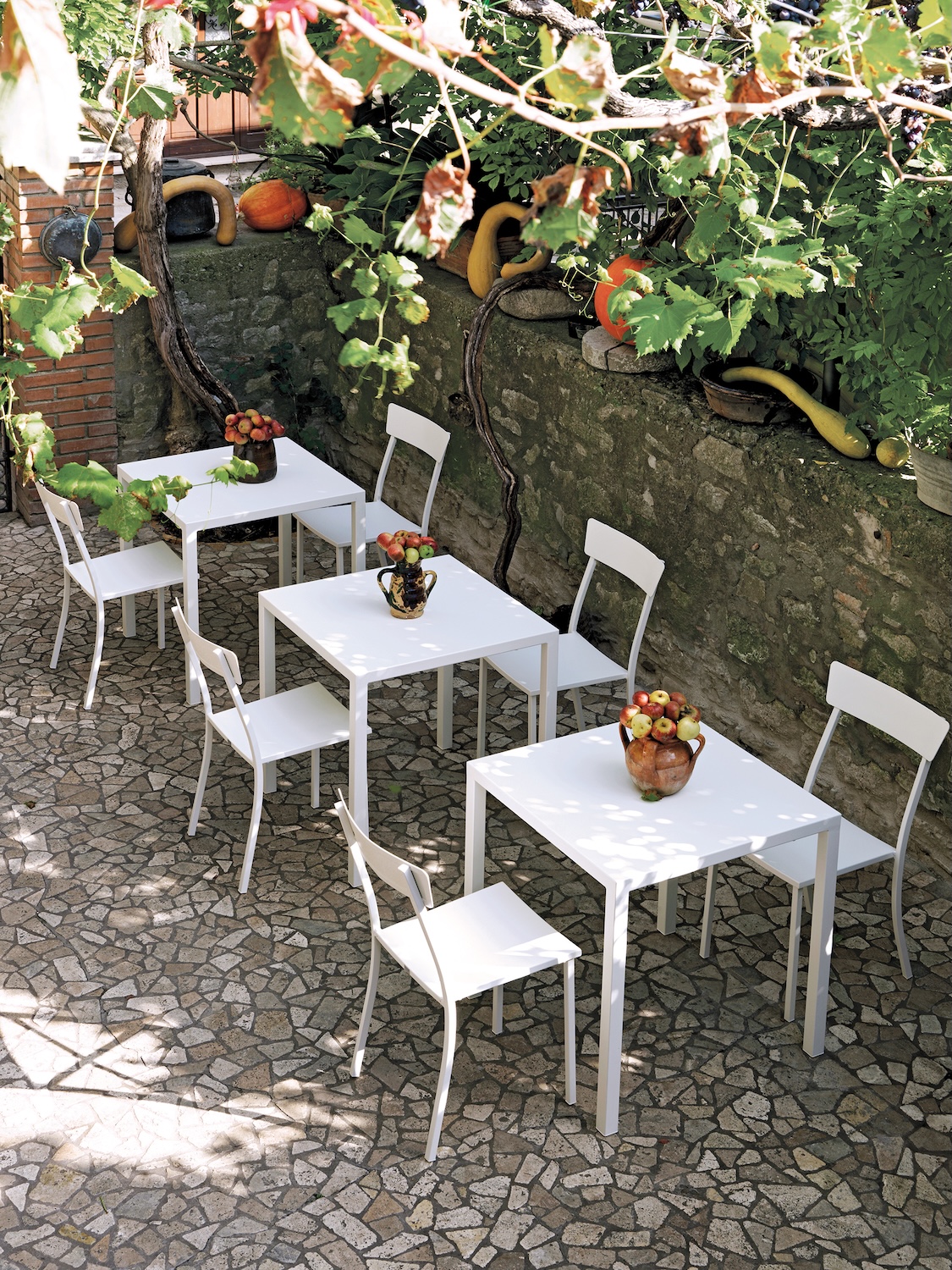 Mogan Chair by Vermobil showcases refined simplicity through its precise lines and lightweight construction. Designed for outdoor versatility, its clean silhouette and subtle curvature provide ergonomic comfort while maintaining a distinctly modern appeal. Durable and stackable, the Mogan collection blends practicality with Vermobil’s signature Italian craftsmanship.