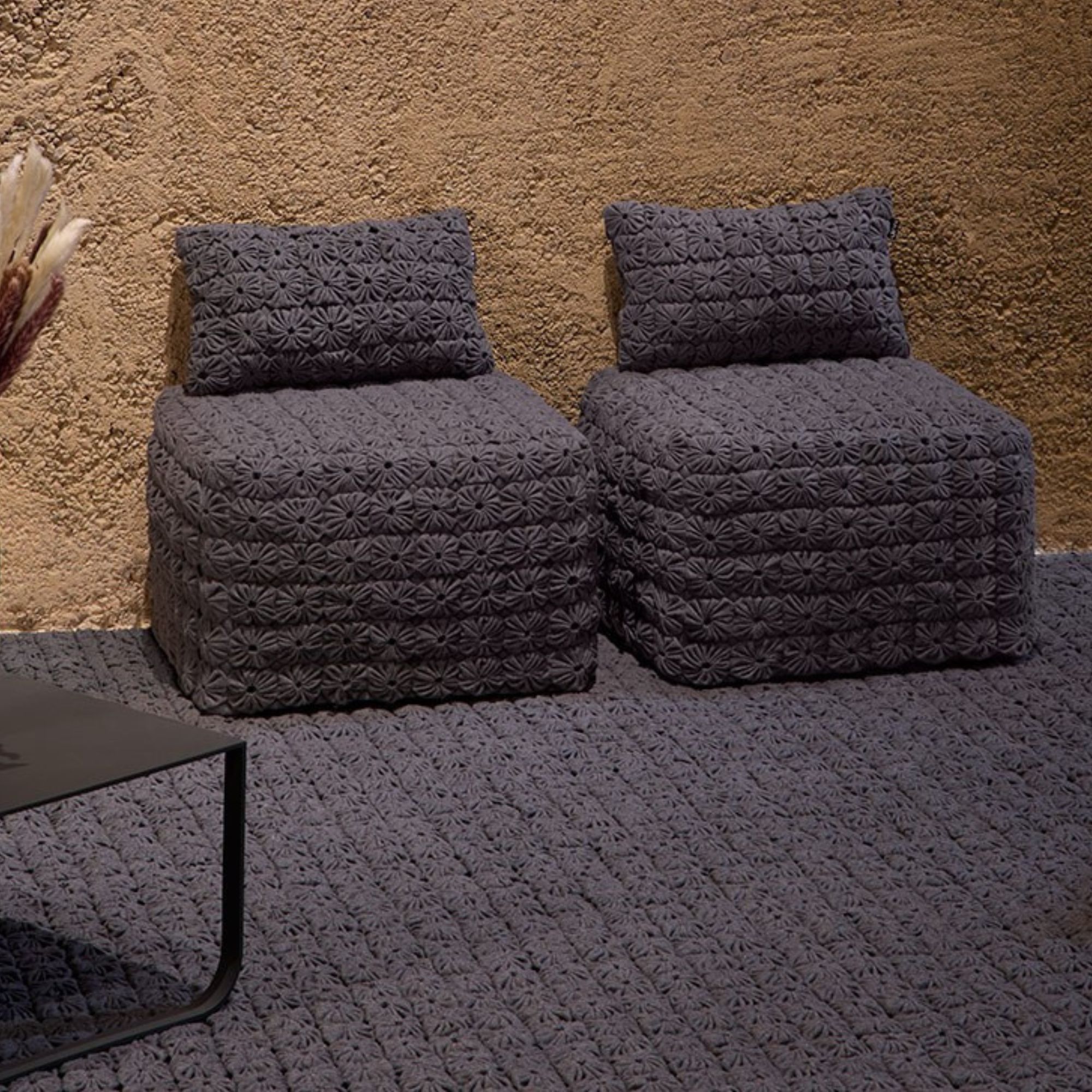 Momos Pouf by Gan Rugs is part of the Momos collection, a design by José A. Gandía-Blasco Canales that includes a matching rug and cushion, which can be used to design informal settings.