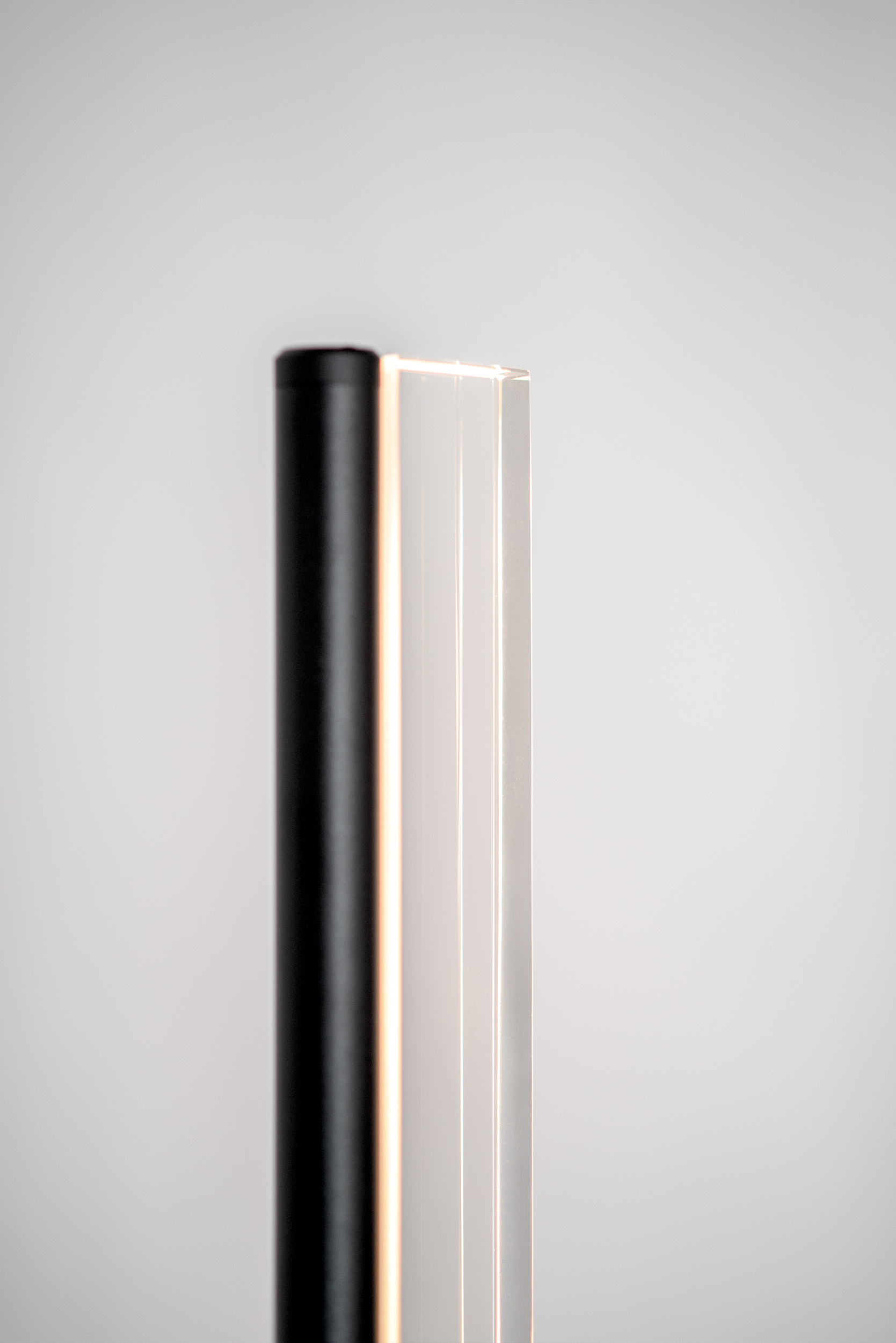 When unlit, Napier appears transparent and monolithic, coming alive upon illumination. Light delicately dances across the chamfered edges of its geometric form, casting a mesmerising jewel-like glow.