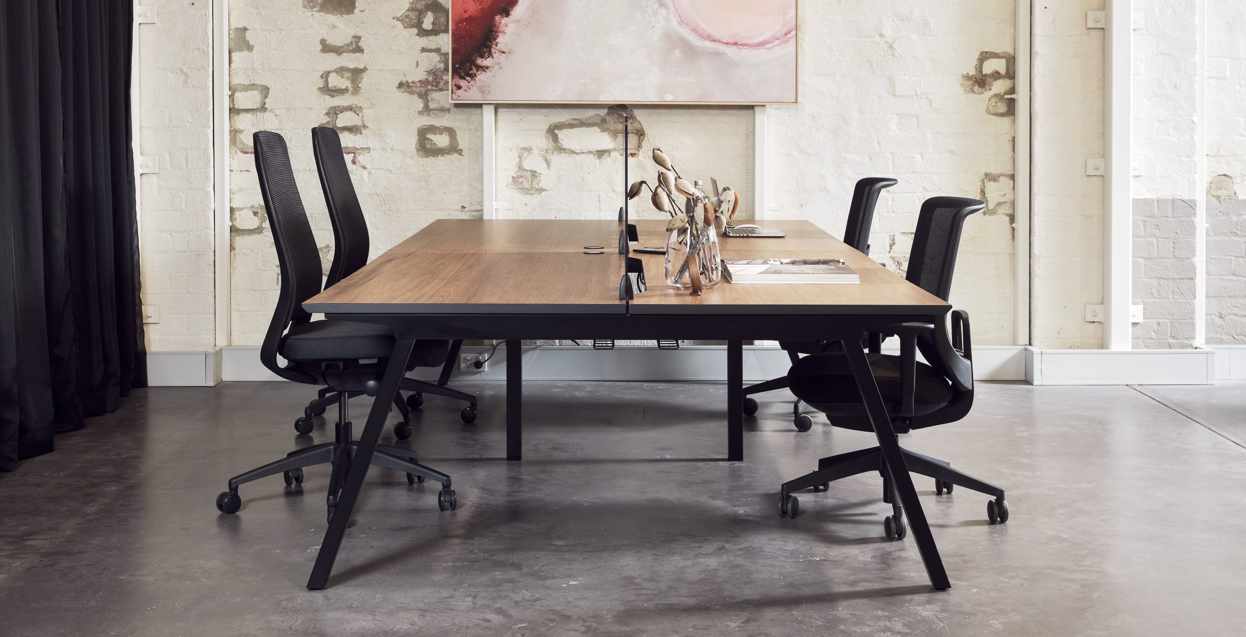This includes workstation clusters, hot desks, office desks, rectangular meeting tables, round meeting tables and high tables. Offering a complete family of products.