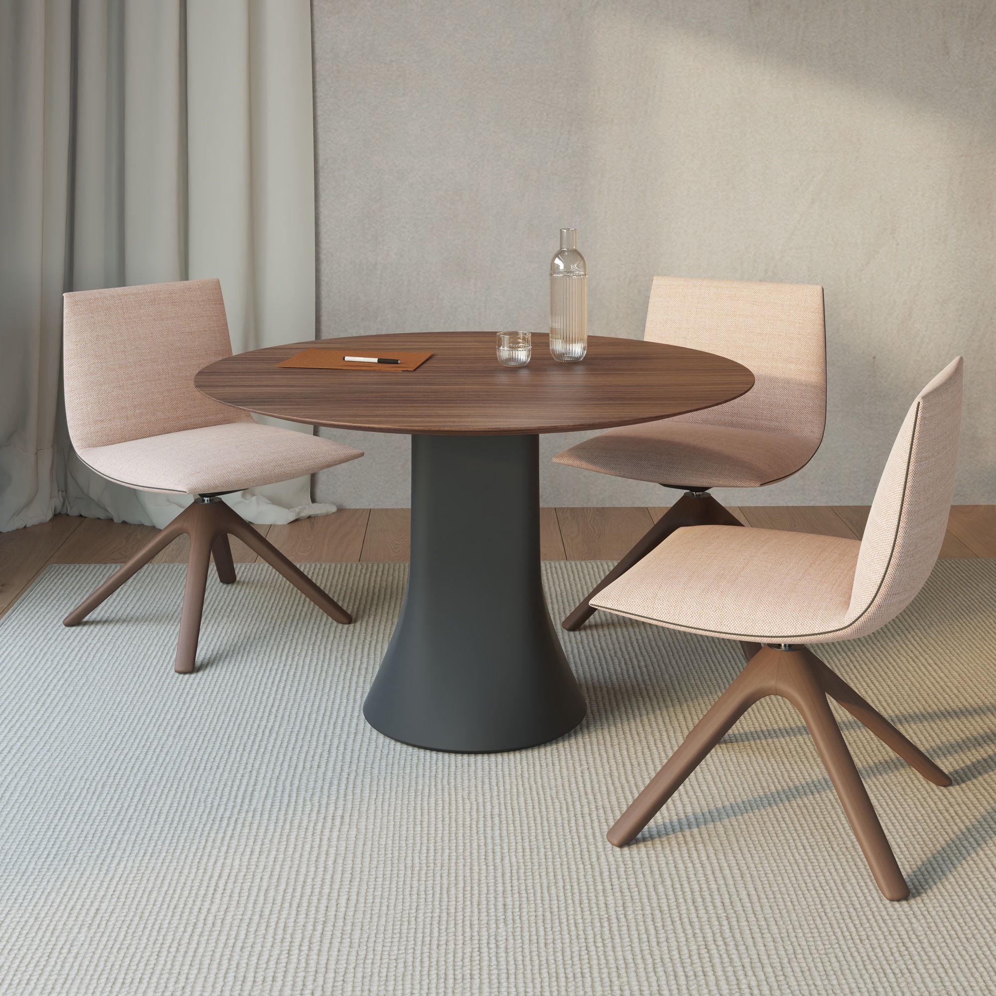 Noha Chair by Viccarbe is crafted to offer refined comfort through its adaptable design and premium materials. Featuring a resilient steel frame with options for metal or upholstered armrests, it balances structural strength with tactile softness for versatile use in both professional and residential interiors.