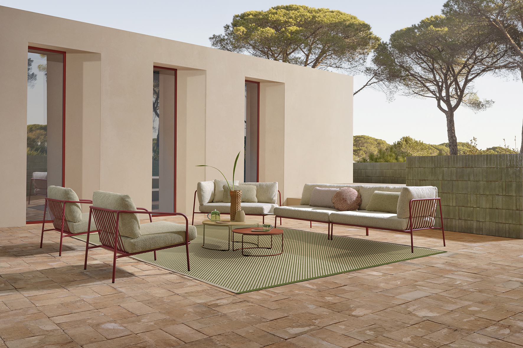 The armchair incorporates the collection’s spirit of transparency and lightness, the comfort is given by soft cushions with waterproof lining and removable outdoor fabric cover. Designed to enjoy relaxing moments in the open air, Nolita Relax suits home living as well as lounge areas in contract spaces.