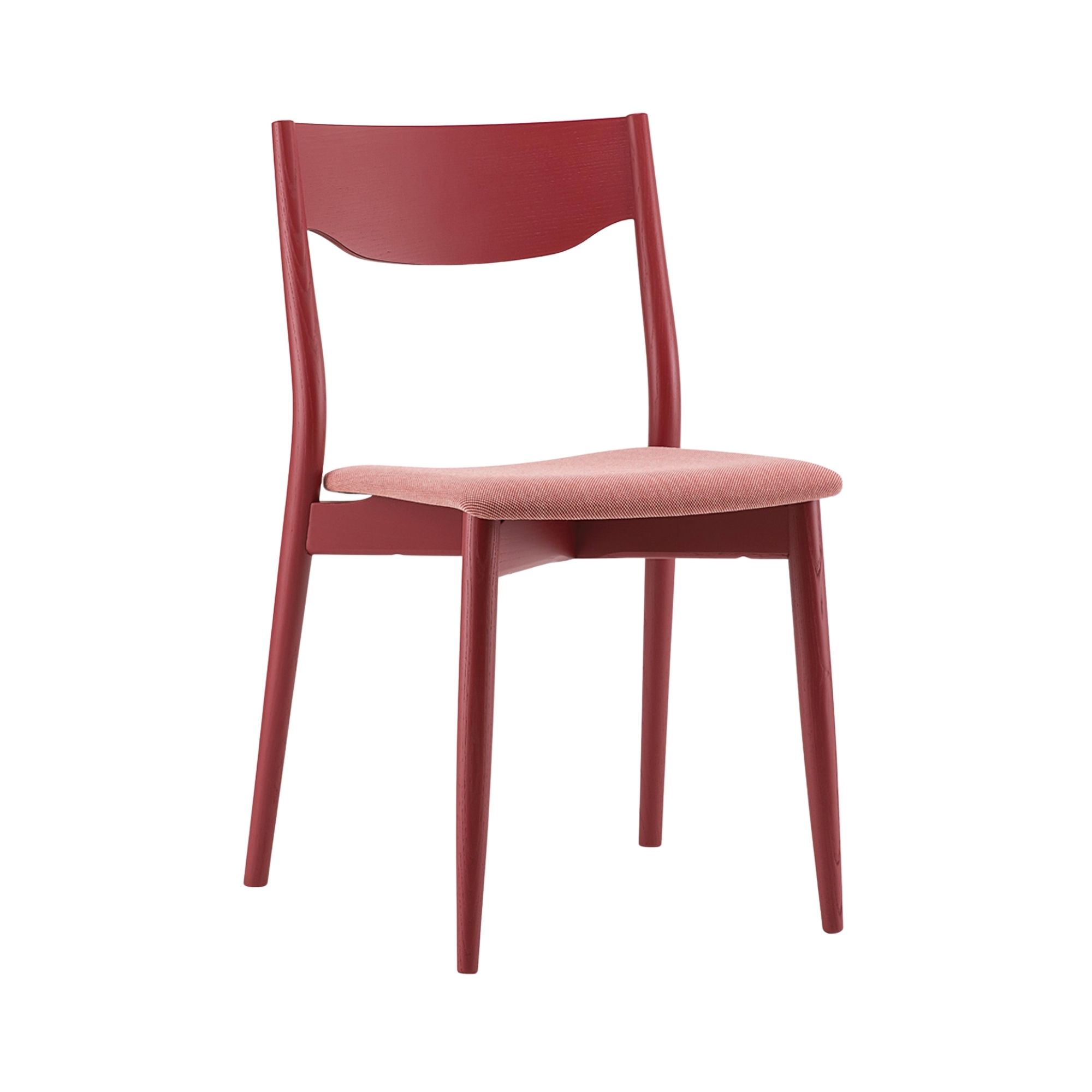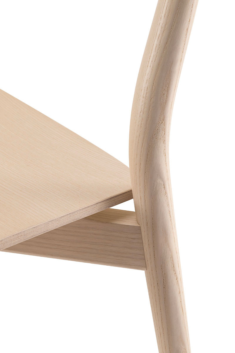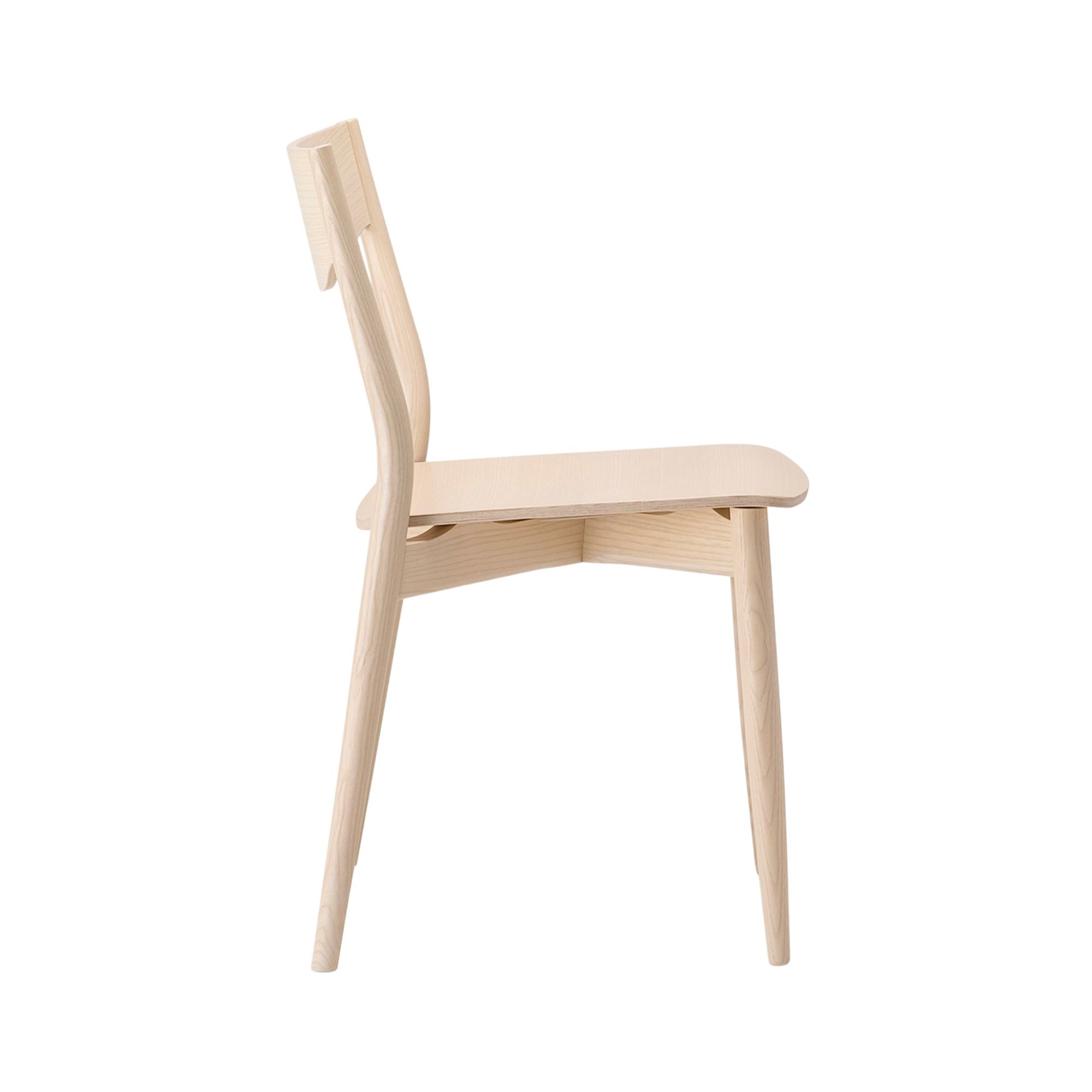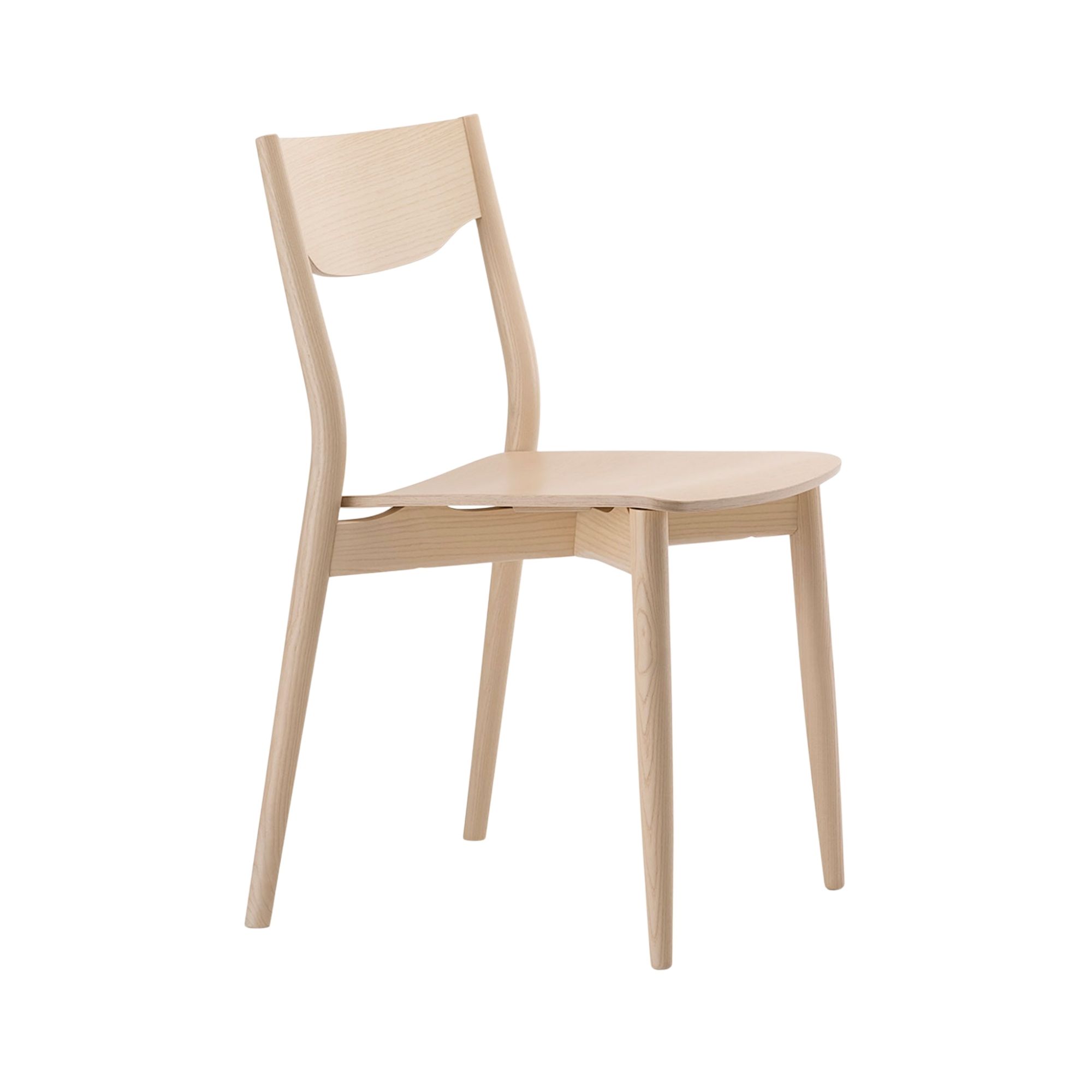 Nordia chair by Cizeta is stackable and born from the fusion of Nordic design minimalism and the manufacturing tradition, combining visual lightness with the material beauty of ash wood.