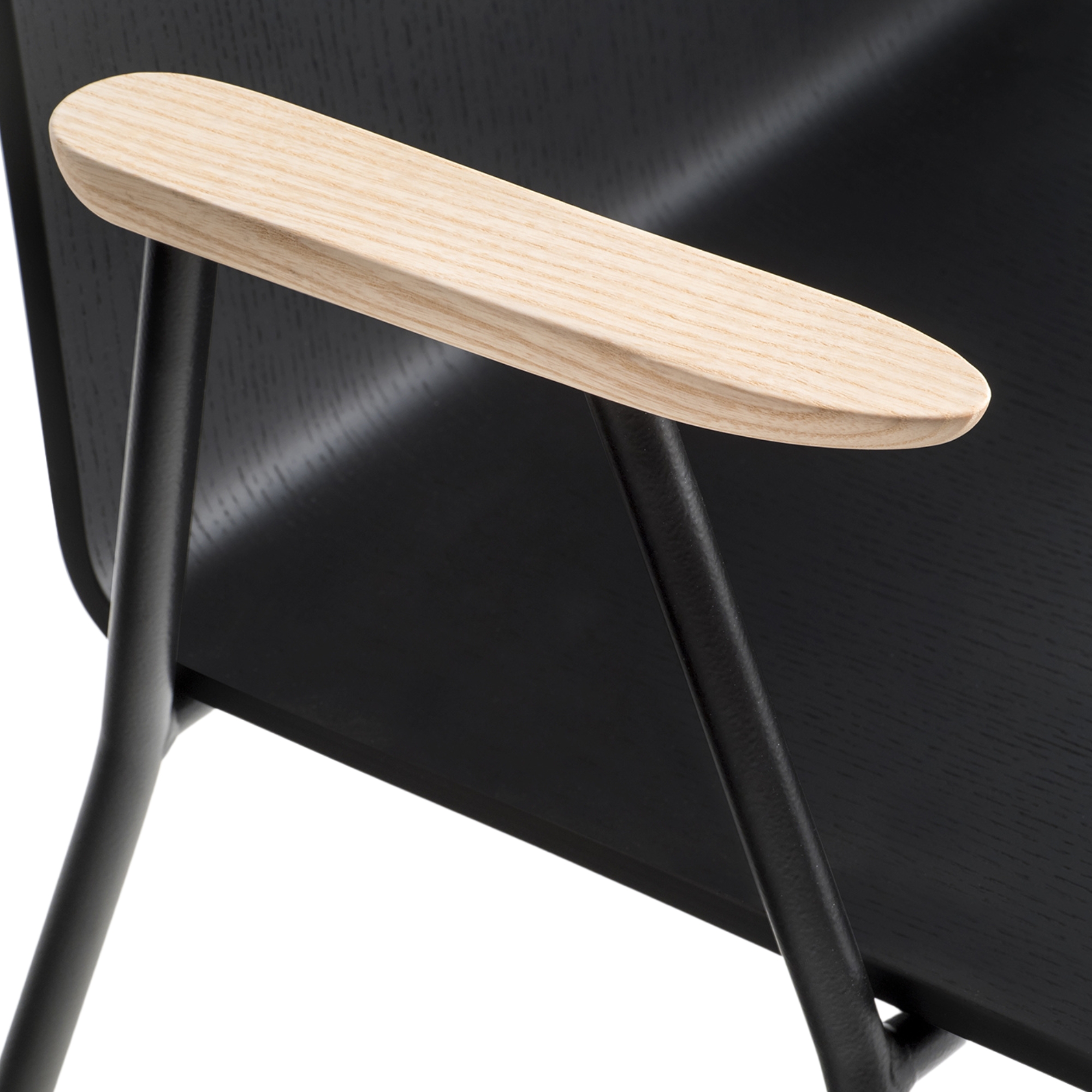 The Osaka collection offers seating options with a strong visual impact, where the construction elements echo the clean, linear qualities of an ideogram. The Osaka Metal chair, with its ash plywood shell and steel tube frame (Ø 16 mm), presents a sleek and modern design.