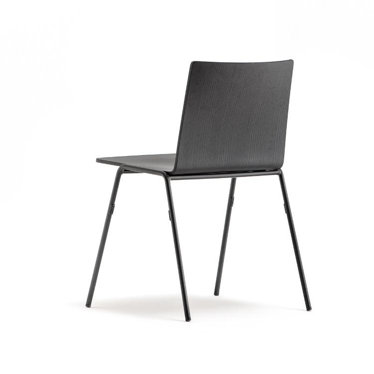 Osaka chairs boast simple, modern lines and a clear sense of functionality. The seat, crafted from ash plywood, comes in various wood stains. The legs are made of steel tubes, available with either a chromed finish or powder-coated in a wide range of colours.