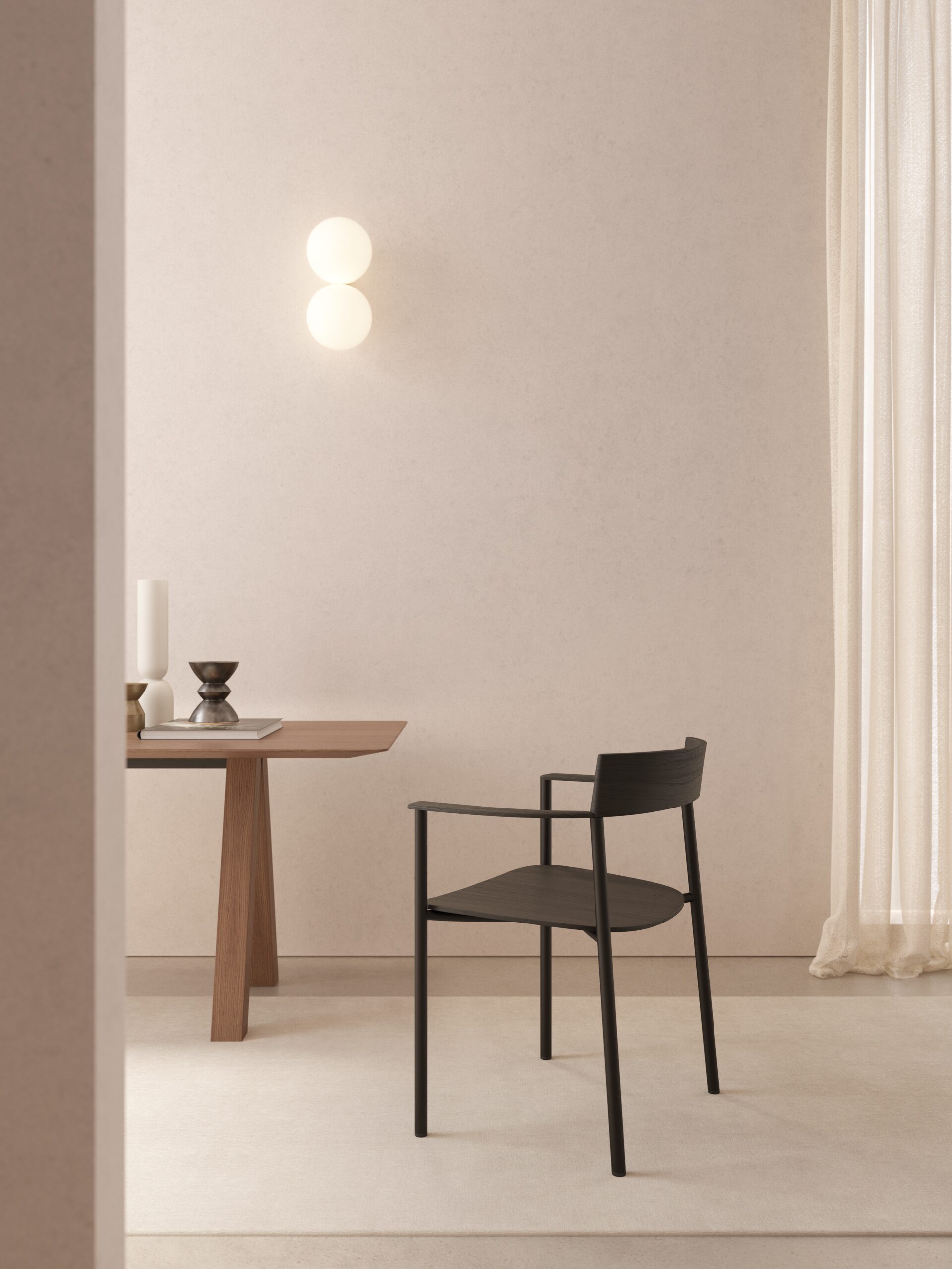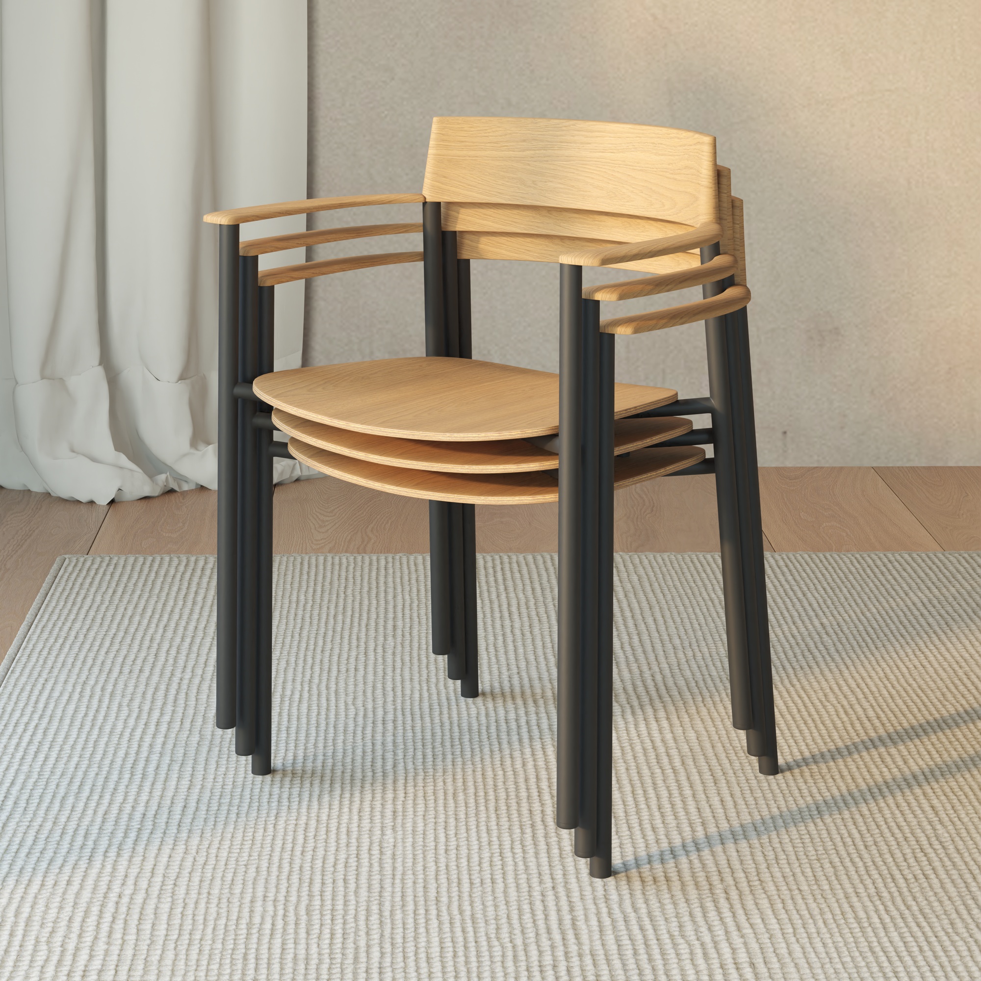 Perxa Chair by Viccarbe is a sculptural design combining a molded ash plywood seat with solid ash wood backrest and armrests, offering a refined balance of natural warmth and structural clarity. Its lightweight form and stackable option provide practical versatility for both residential and commercial interiors.