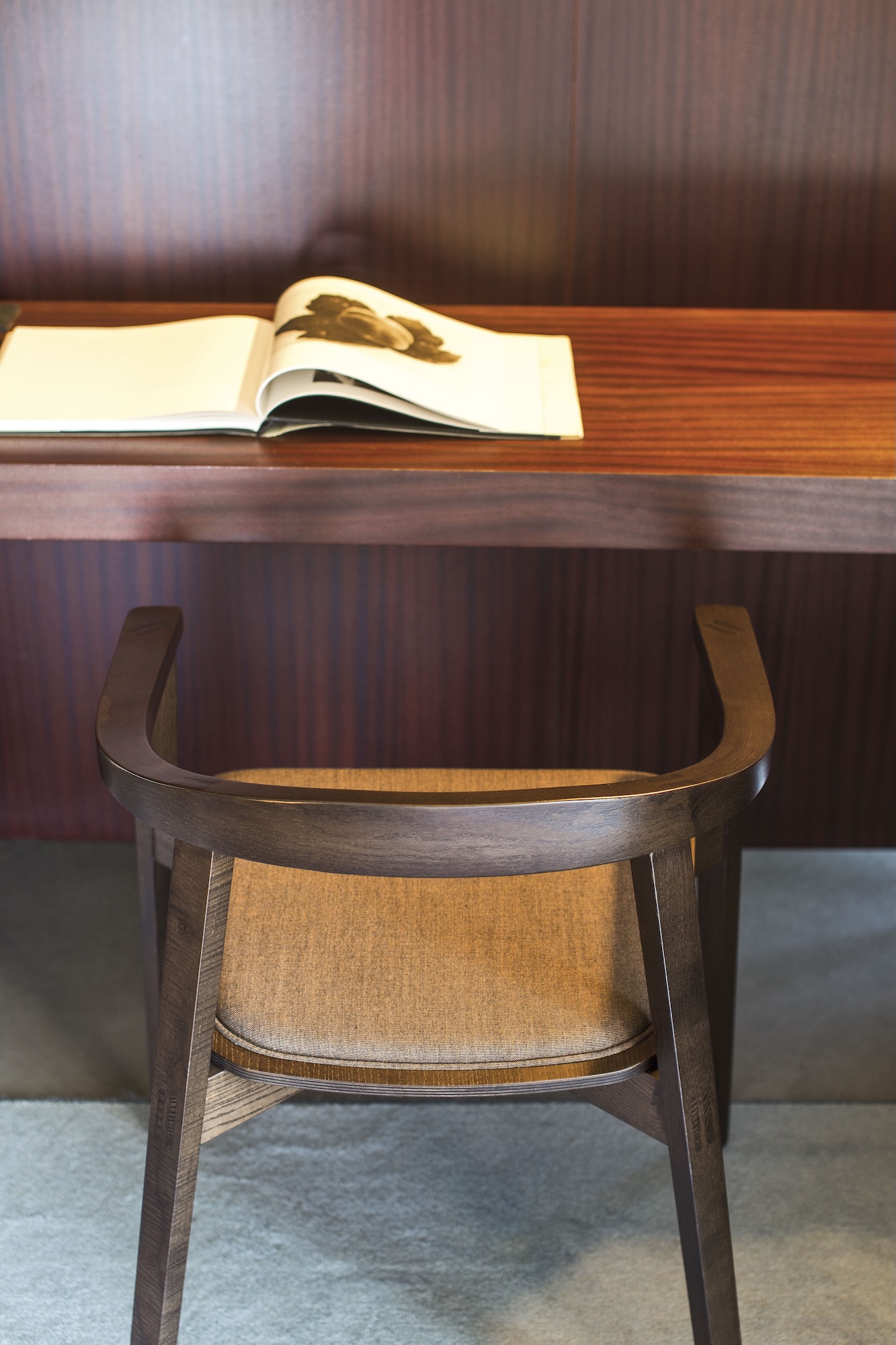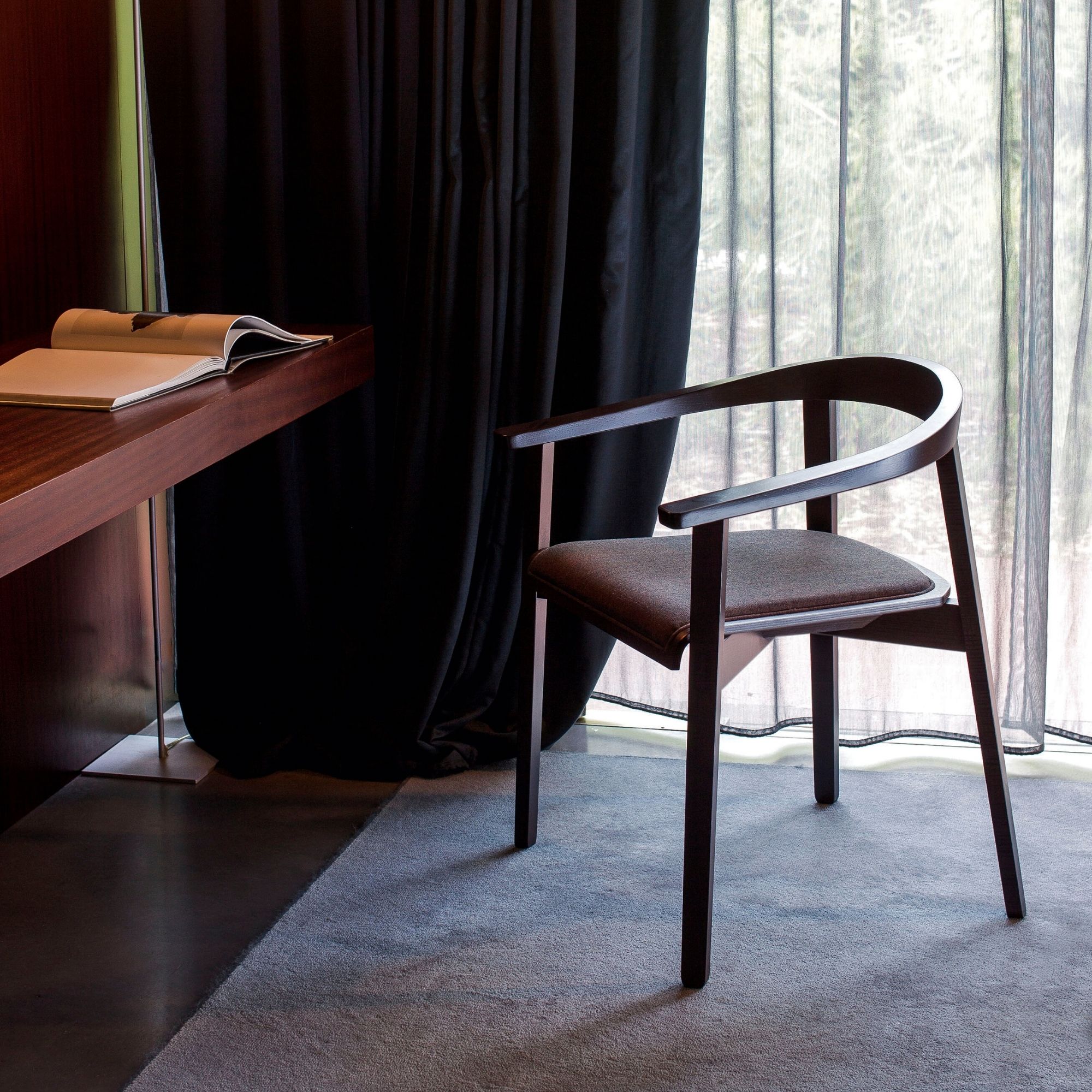 Seat available in timber or with an upholstered seat pad- choose from the Cizeta range of fabric or leather