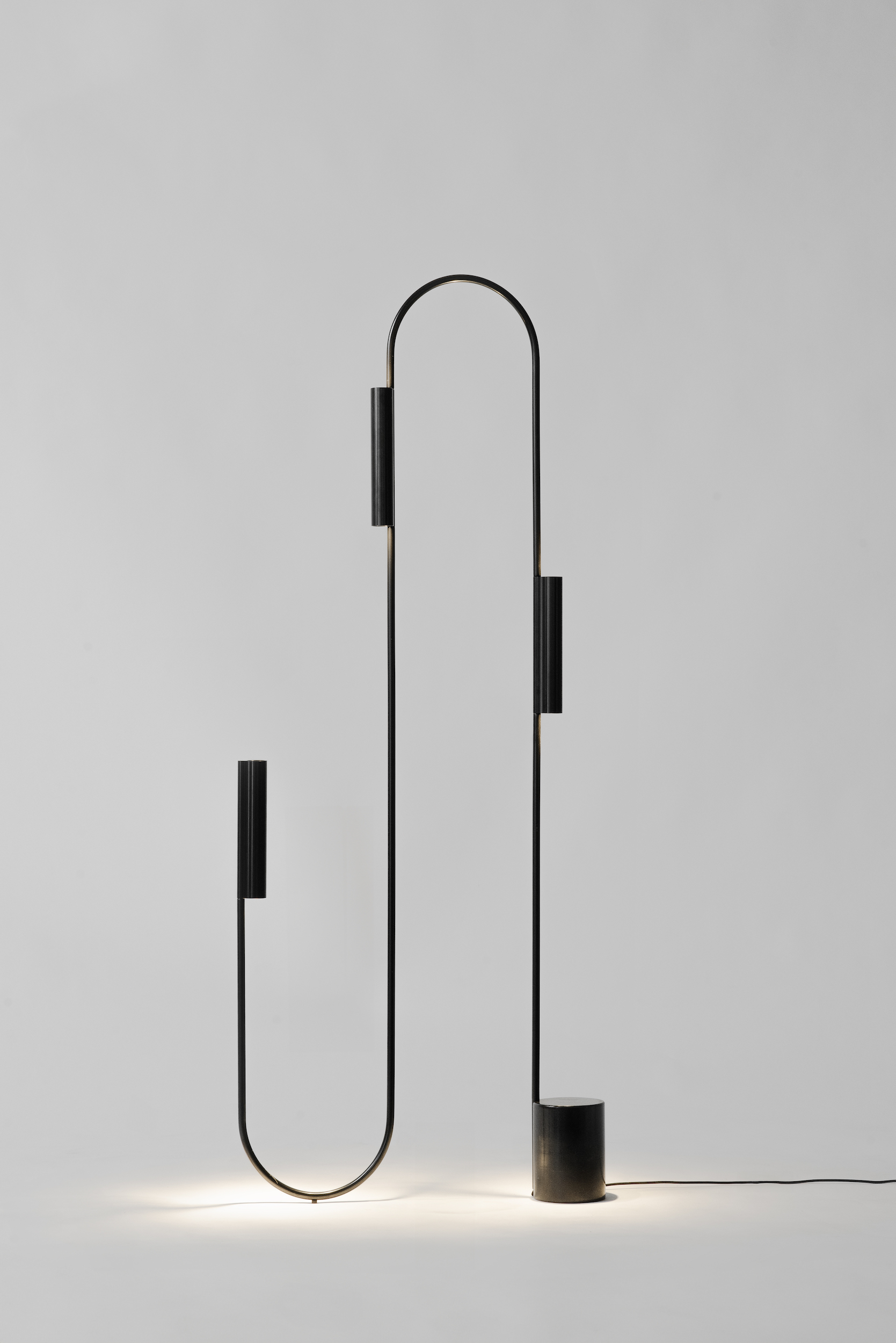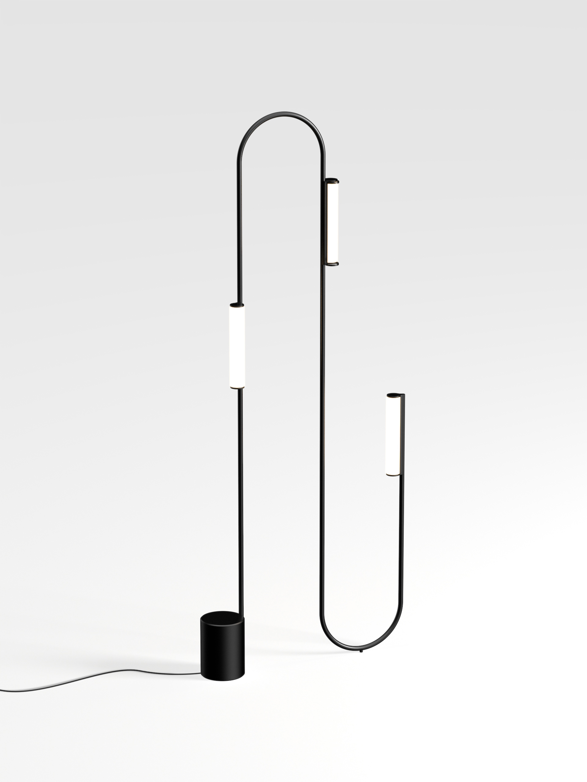 Pop’s gracefully sinuous arms extend into space-defining linear or curved formations, or elegantly loop back upon themselves creating engaging sculptural arrangements. Seamlessly blending artistry with functionality, multiple freely rotating light modules throughout the sculpture offer versatile options for directional up & down lighting or a diffused ambient glow.