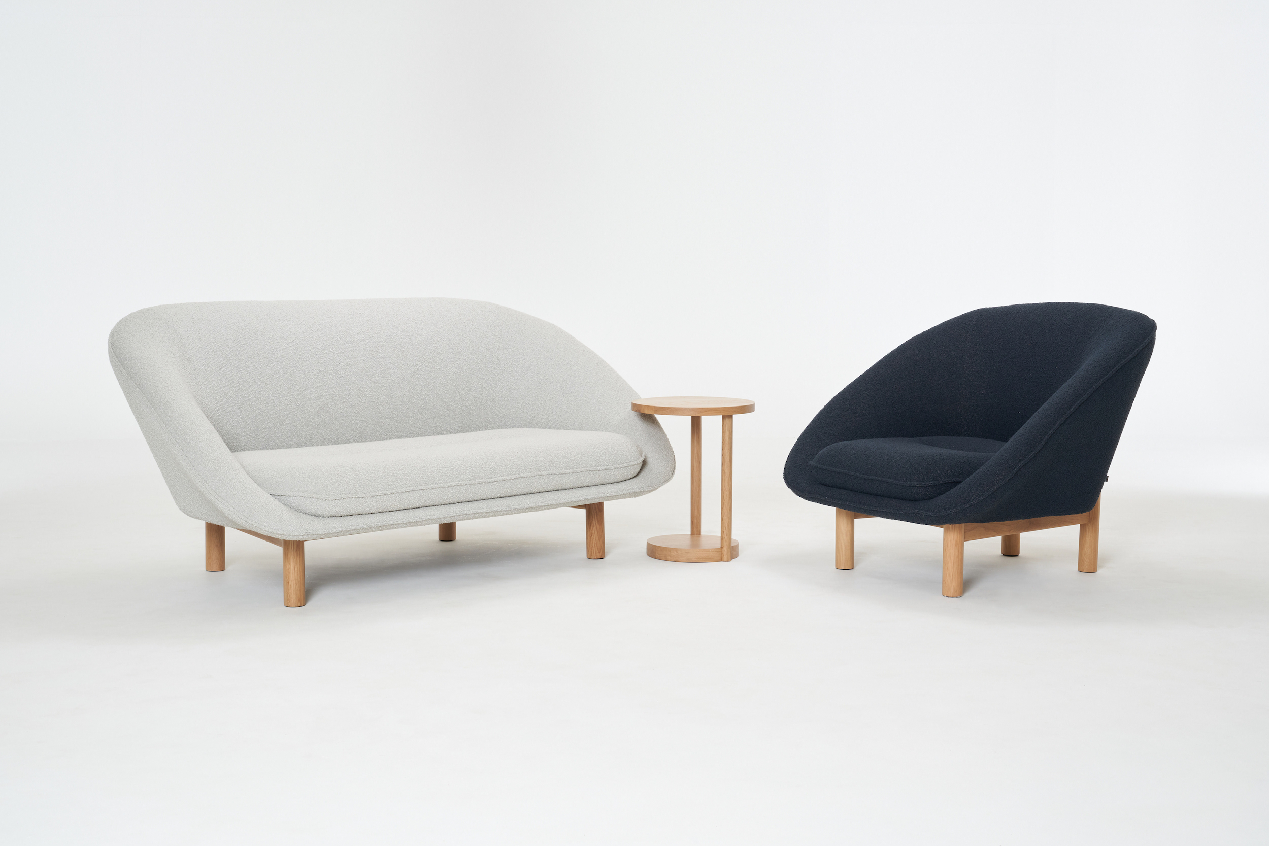 Portobello sofa by Tolv has scooping organic forms. It cuts an elegant figure from sweeping back to soft seat.