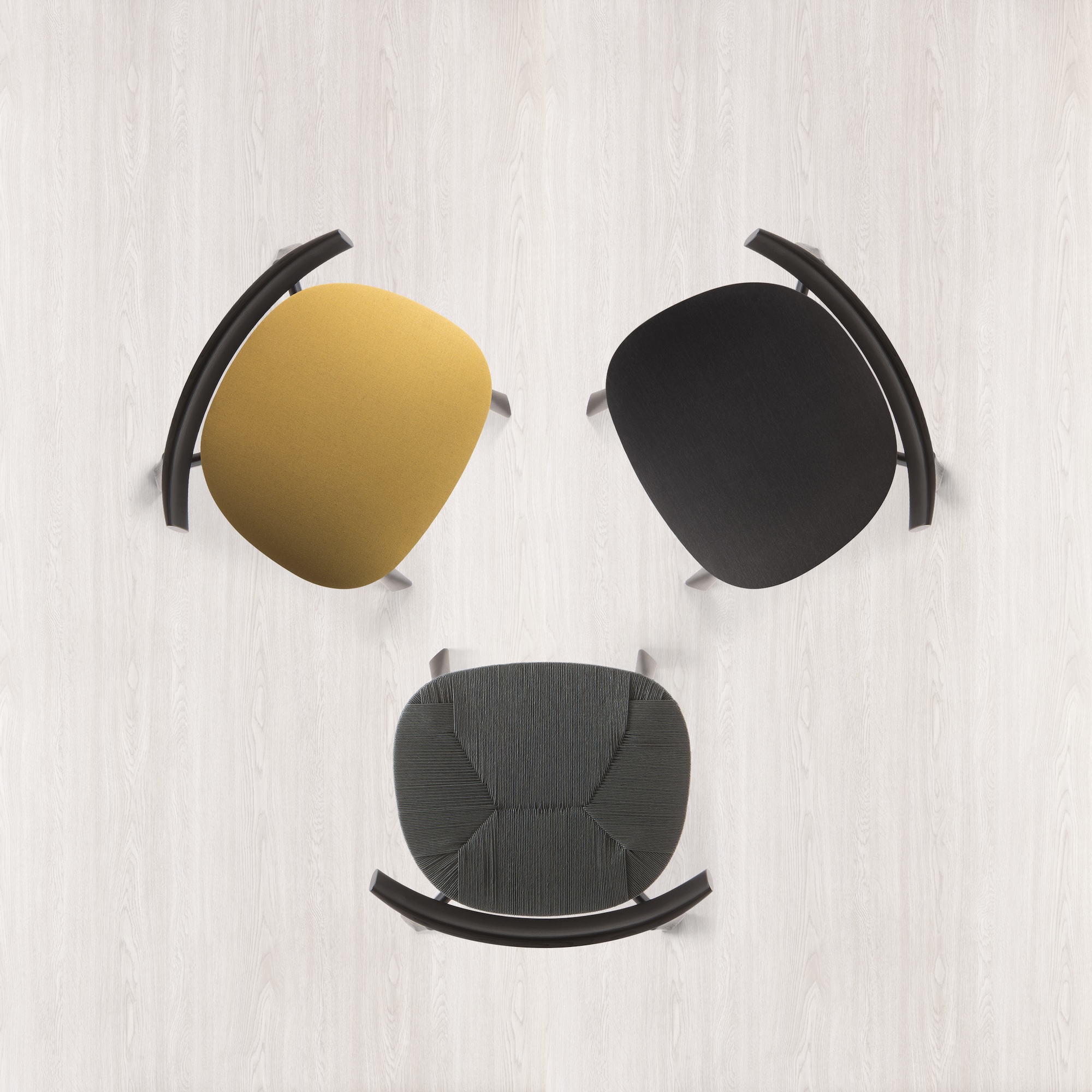 Seat available in timber, polyester rope, papercord or with an upholstered seat pad – choose from the Cizeta range of fabric or leather
