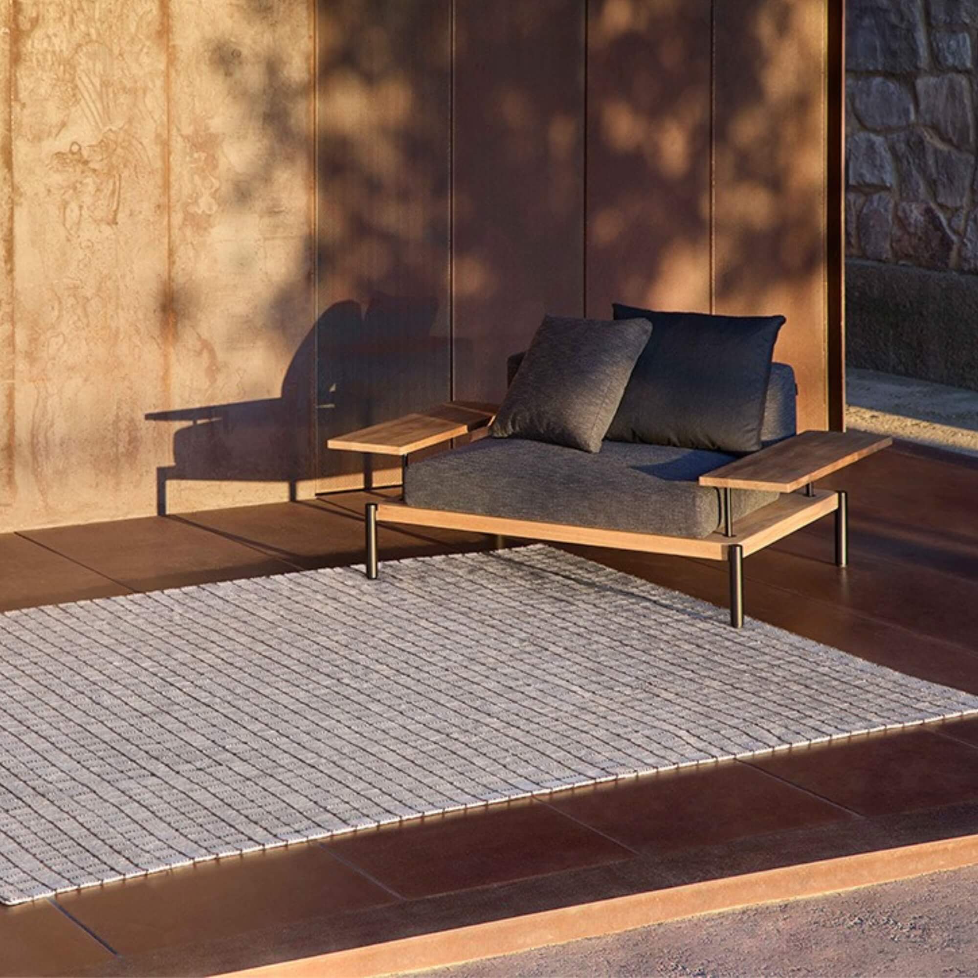 The Reti collection of rugs are made with soft recycled PET fibers on hand-operated looms using the Hand Loom technique, making them very pleasant to the touch and, at the same time, very resistant. For this reason, Reti rugs can be placed in indoor or outdoor environments. Due to their design, they fit well in a living room, as well as in a workspace or on a terrace.