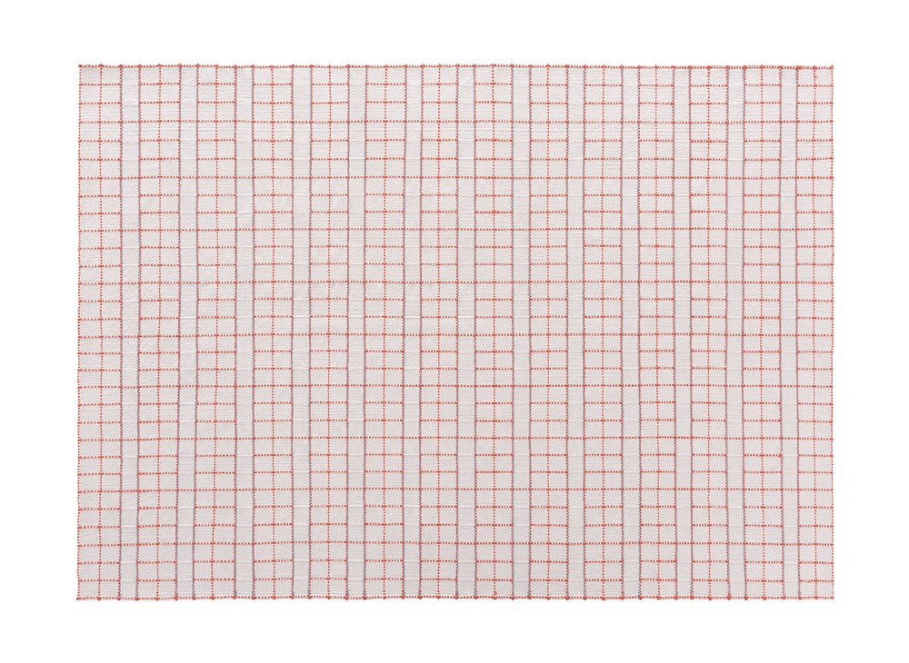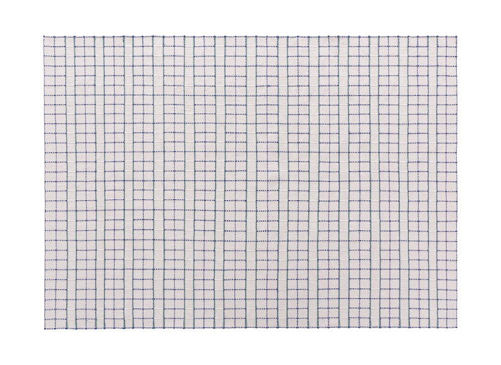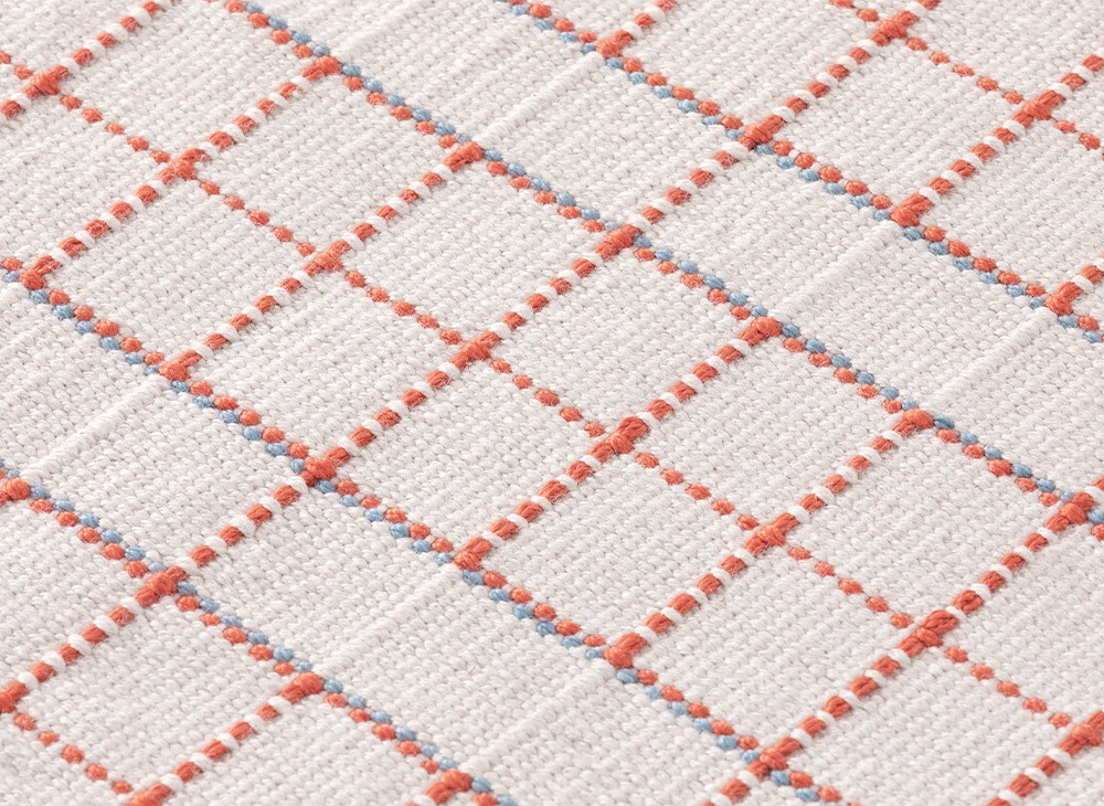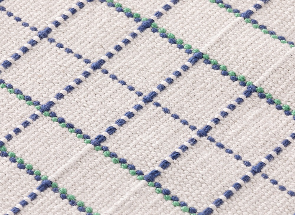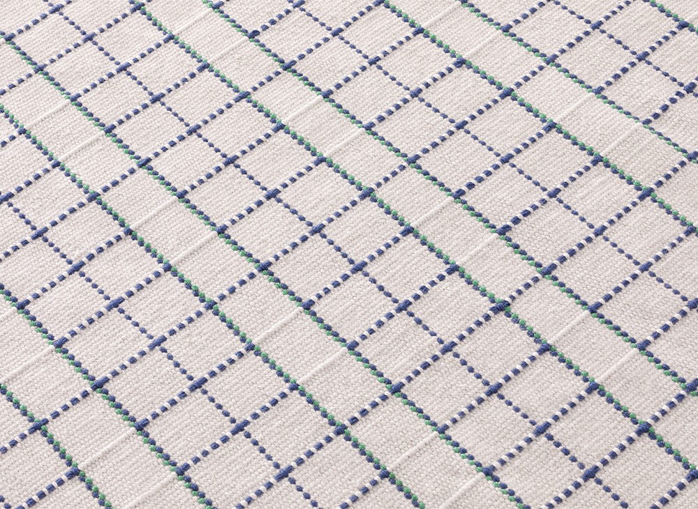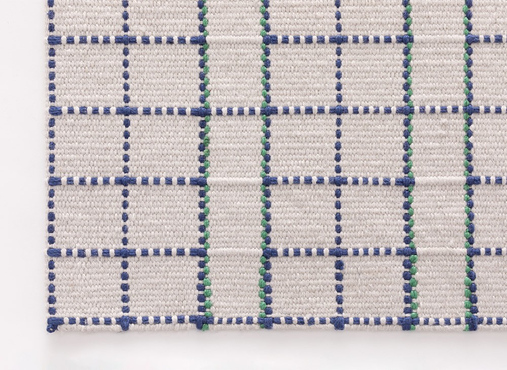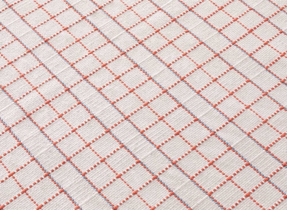 Its artisanal manufacturing process on hand-operated looms is what allows its design to be executed with the necessary precision required by its grid. Thus, while the grid gives its design a contemporary look, the handmade process adds warmth and texture to the piece.