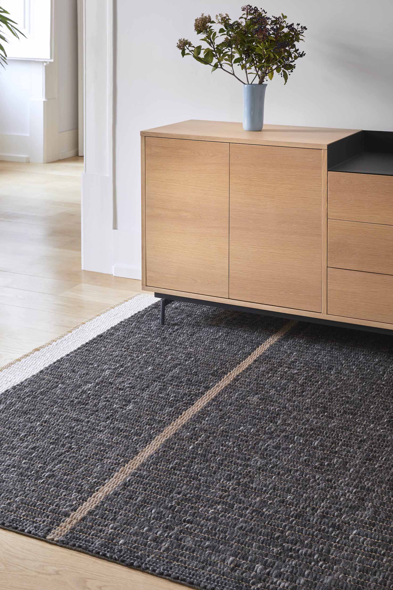 Reversible Rug by GAN Rugs combines threads of different thickness and materials.