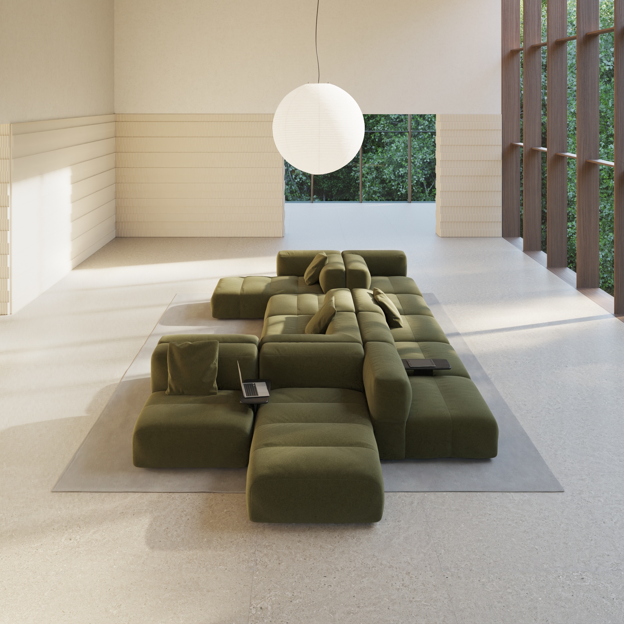 Savina Sofa by Viccarbe is crafted with a solid timber frame and layered cushioning that combines resilience with plush comfort. Its refined proportions and subtle detailing create a versatile presence that adapts effortlessly to both intimate and expansive interiors.