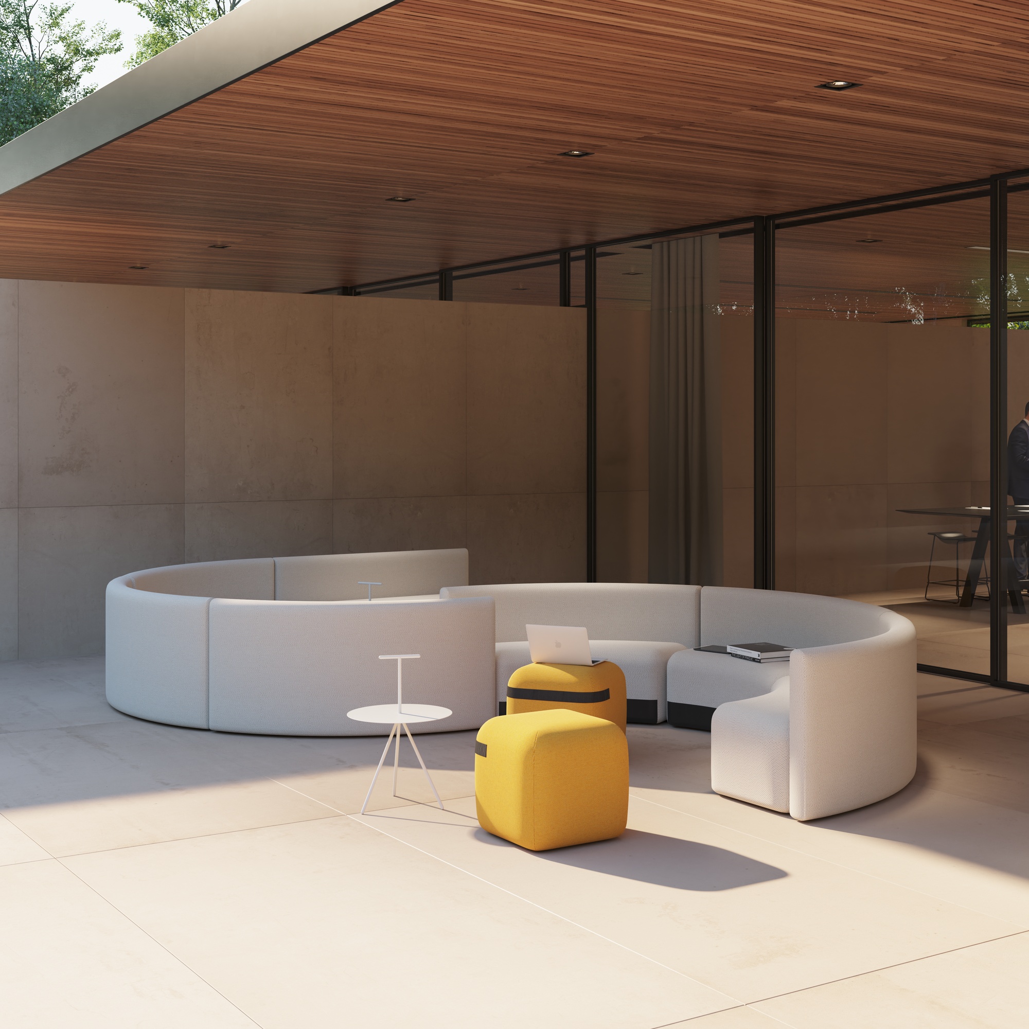 Its modular design invites versatile compositions, creating elegant arrangements that enhance outdoor environments with understated sophistication.