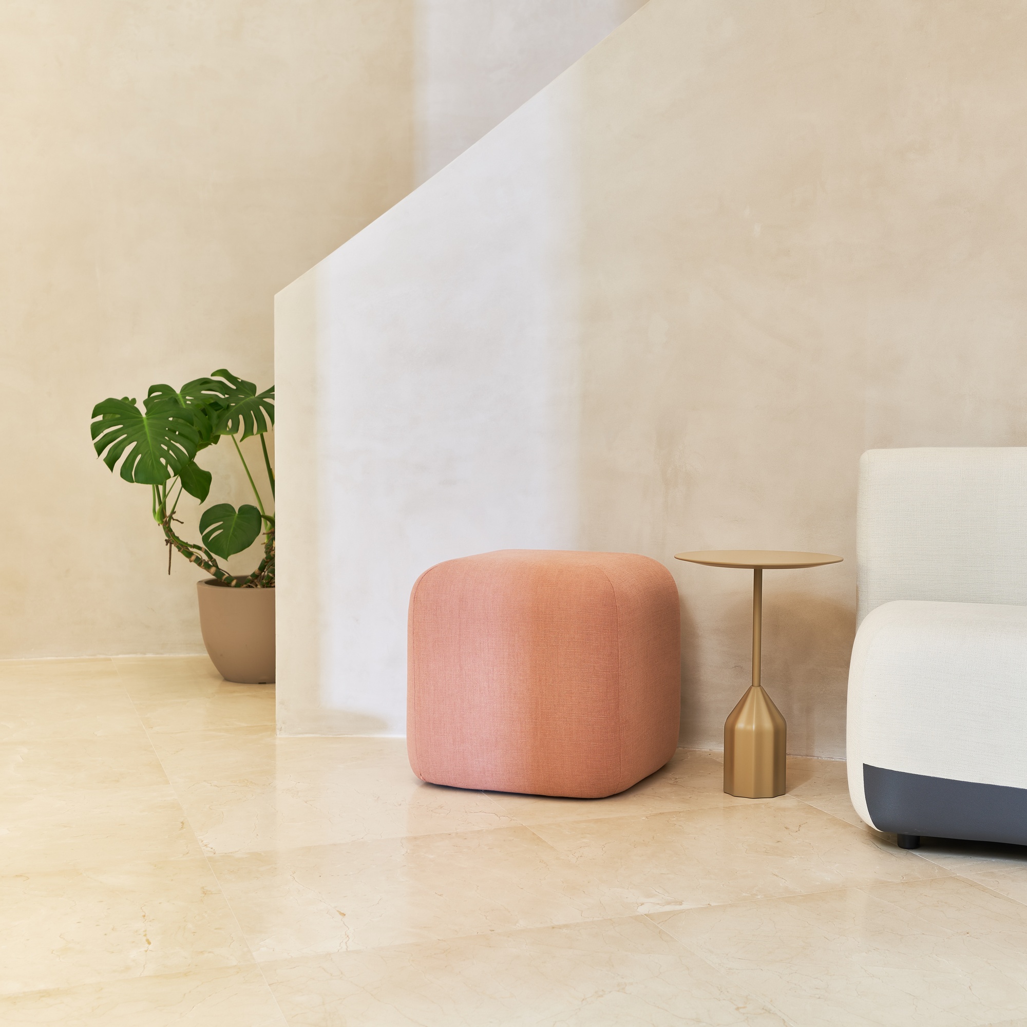 Season Pouf by Viccarbe is crafted with a solid wood structure and layered polyurethane foam, offering a tactile and resilient surface. Its refined form is enhanced by a high-resistance technical fabric strap, providing subtle functional detail and ease of movement.