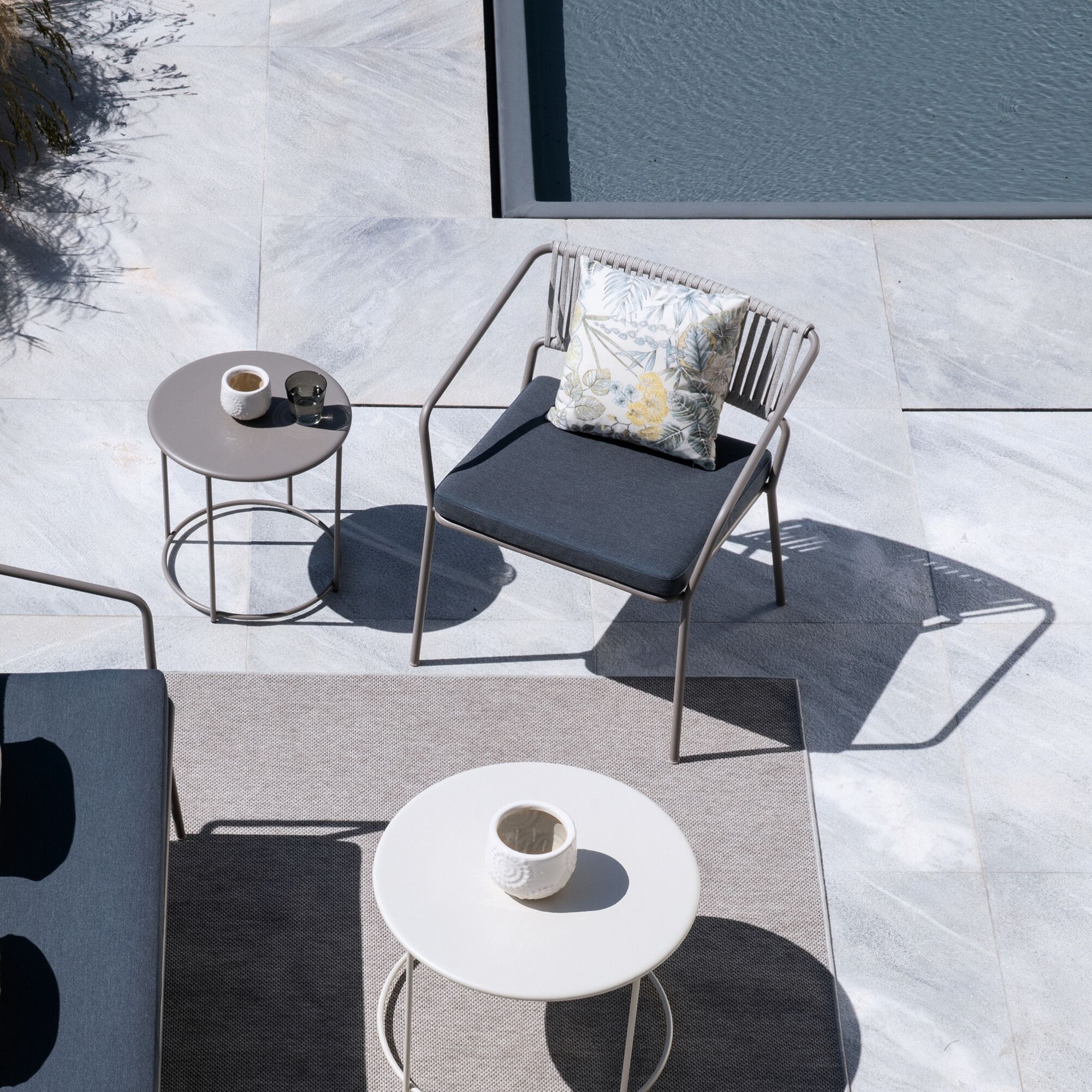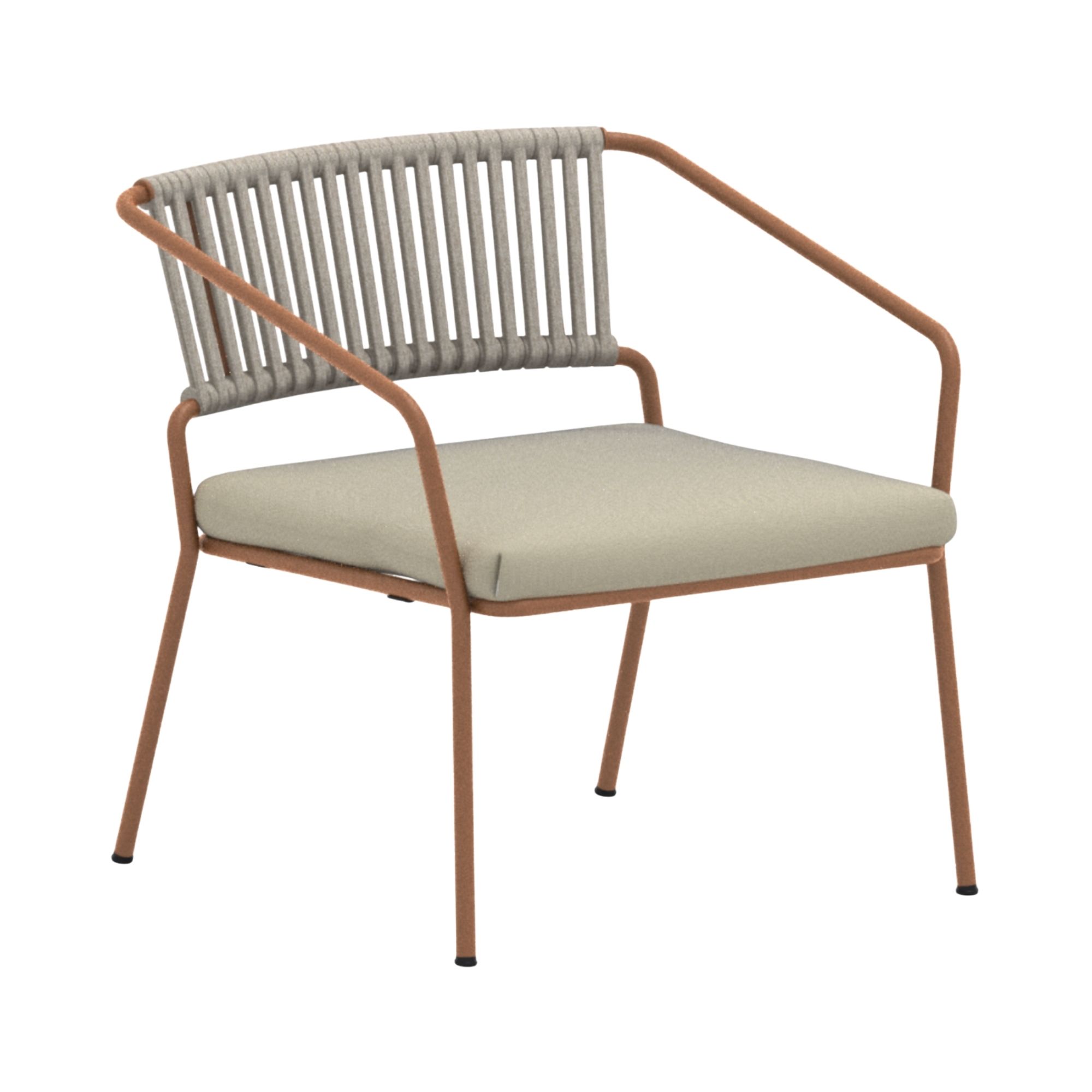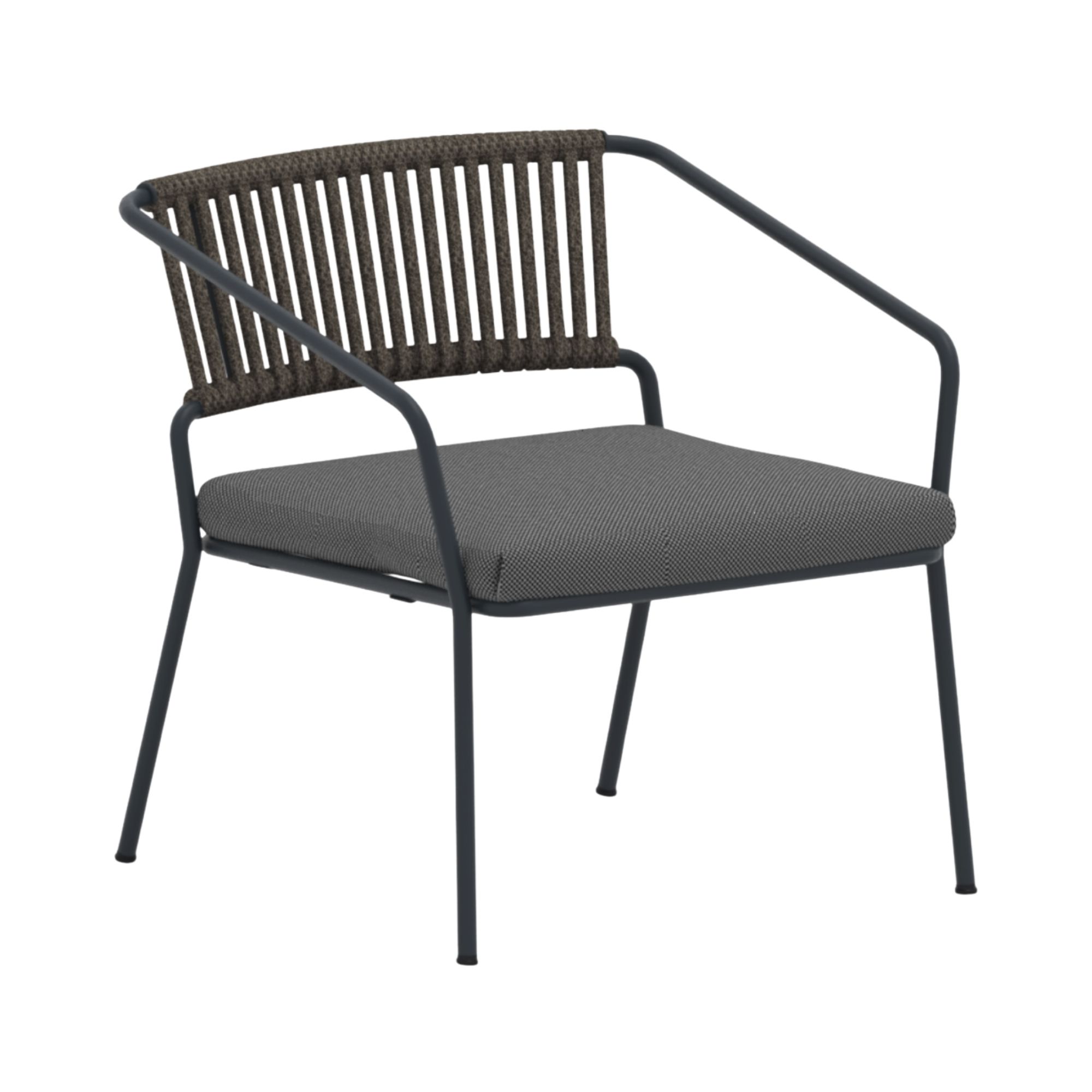 Slot Lounge Chair by Vermobil captures the perfect balance between structure and softness. Its sturdy metal frame is complemented by a woven rope backrest and a plush seat cushion with a removable cover for easy care. Designed for modern indoor and outdoor settings, it blends comfort, craftsmanship, and a contemporary aesthetic suited to both residential and commercial spaces.