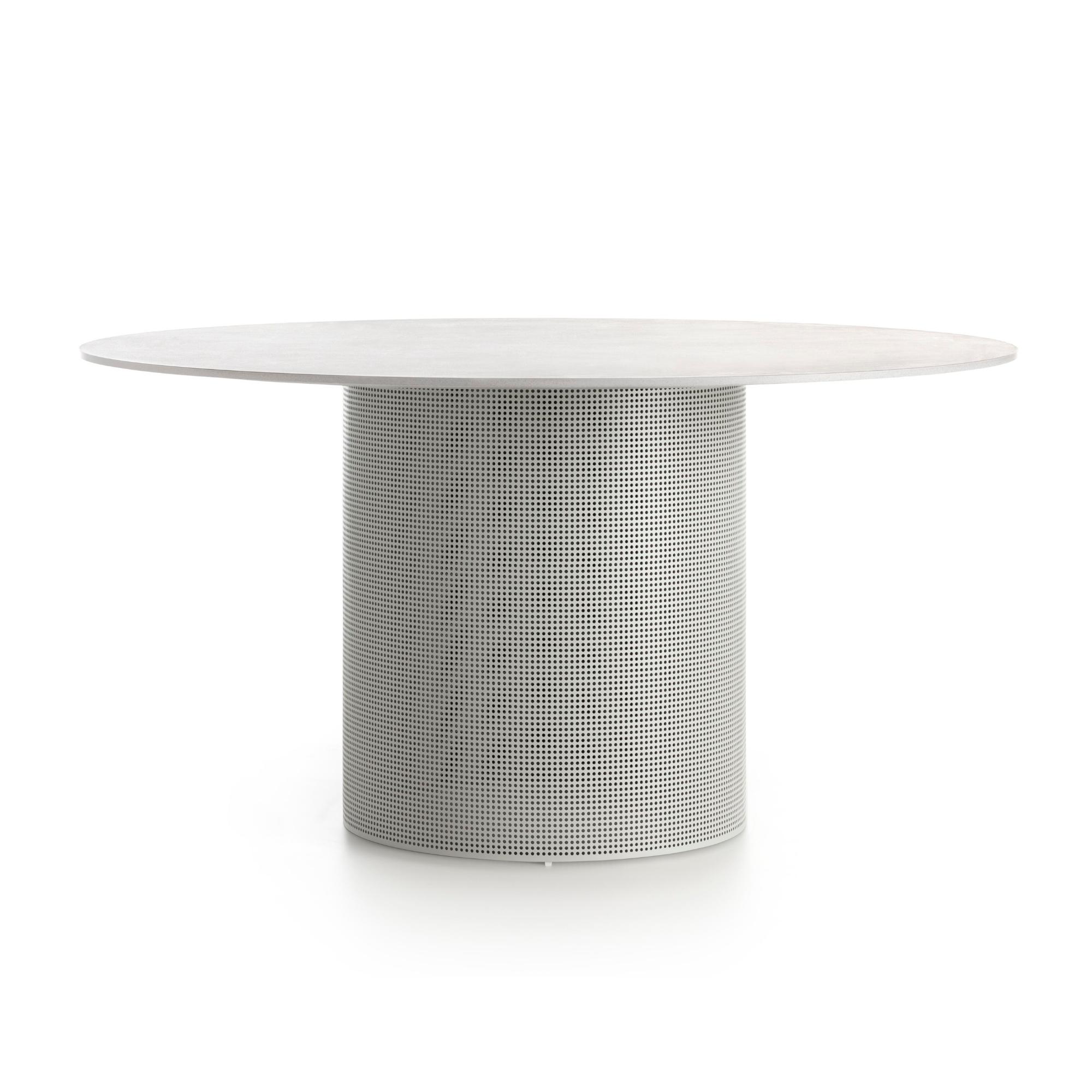 Solanas column dining table by Gandiablasco is a round or square designer table, made of a welded aluminium pedestal base available in a wide variety of powder-coated colours.