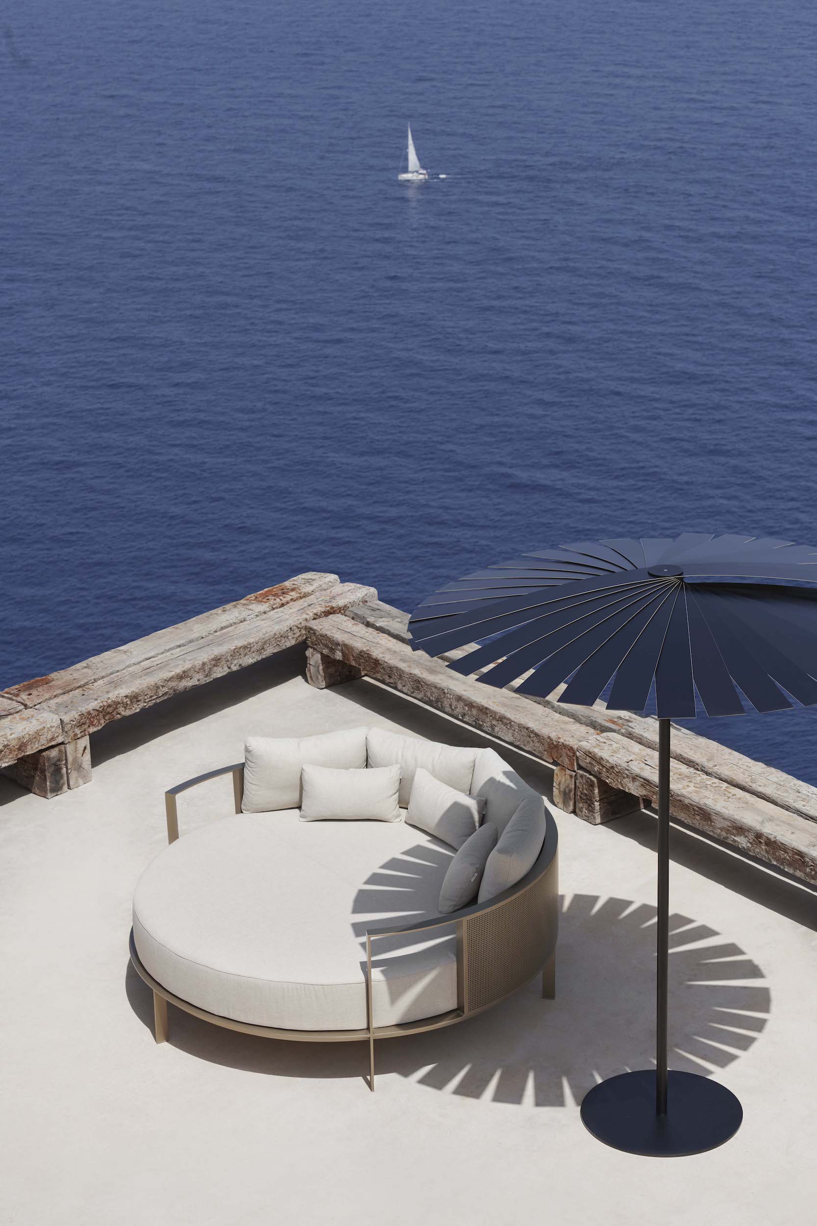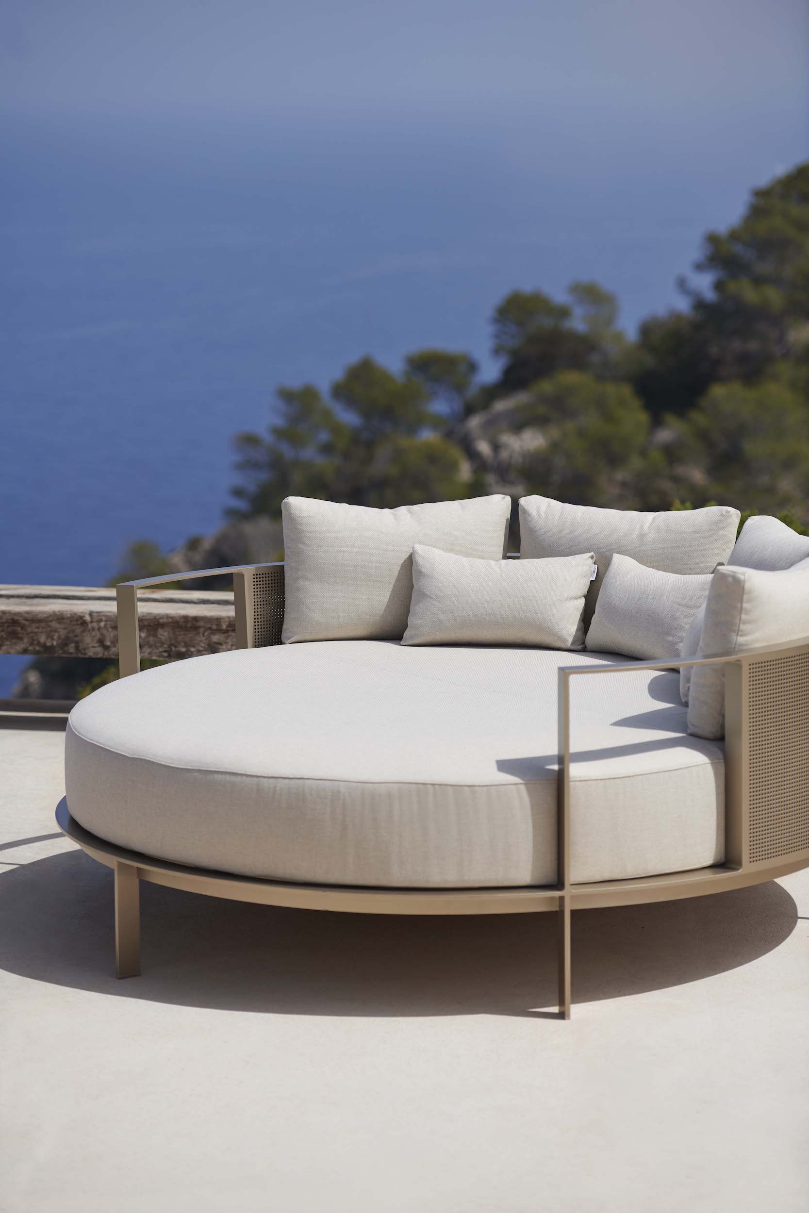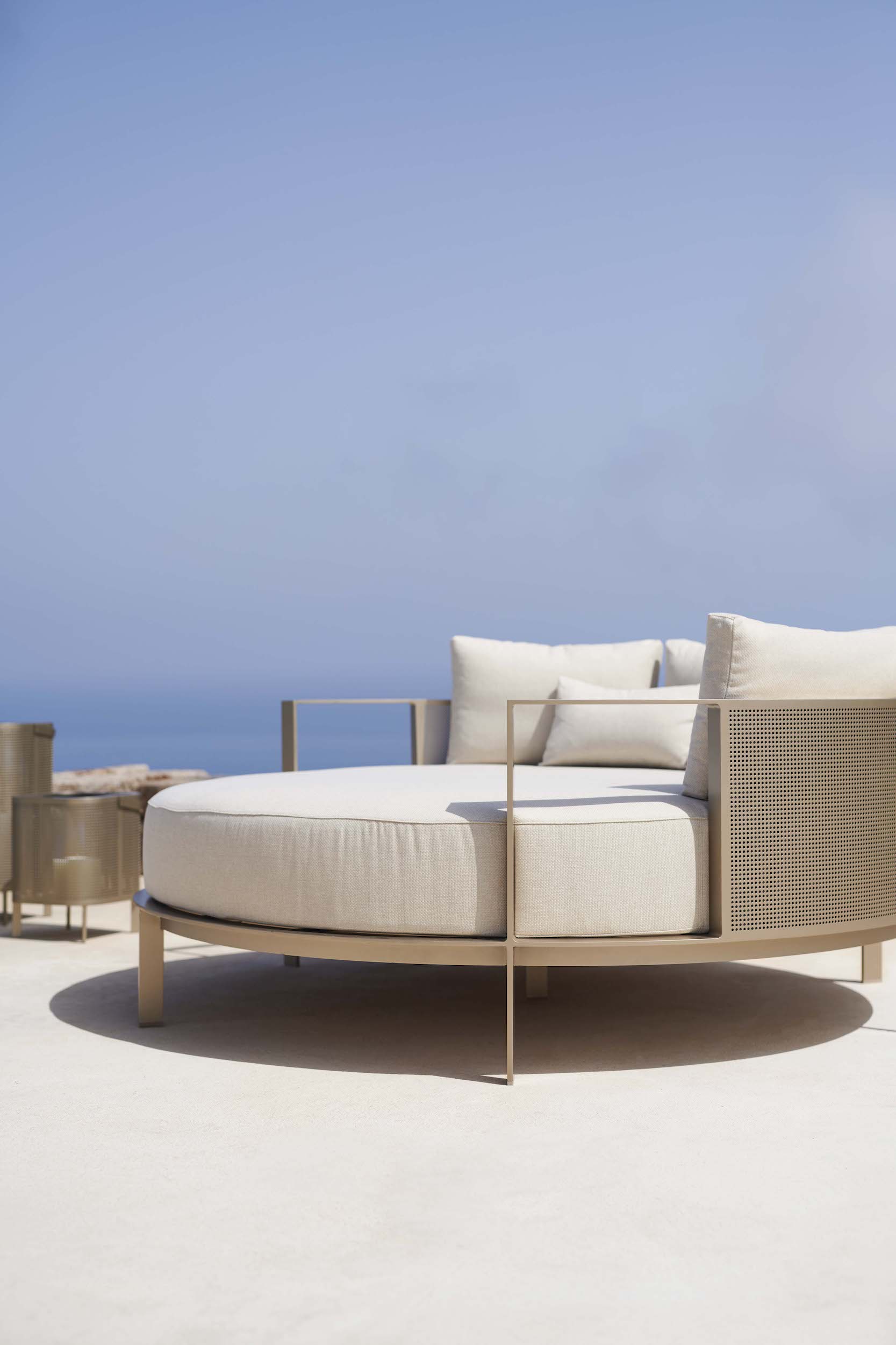 Solanas Round Chill Bed by Gandiablasco is designed to work as an elegant piece by itself, as well as a perfect complement to the collection Solanas Collection. This designer bed is manufactured through semi-industrial processes, to create the unique hand welded aluminium frame.