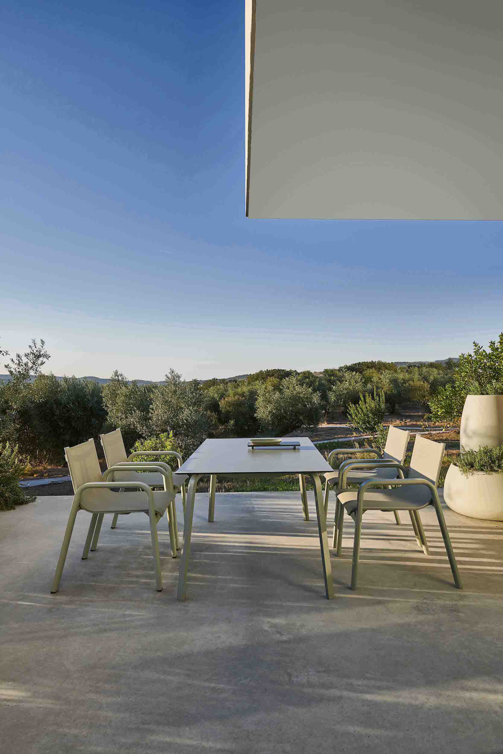 Stack Dining Chair by Gandiablasco is crafted from powder-coated aluminium paired with durable Sunbathe fabrics, ensuring resilience and comfort in both indoor and outdoor settings. Its stackable design enhances practicality without compromising on refined elegance.
