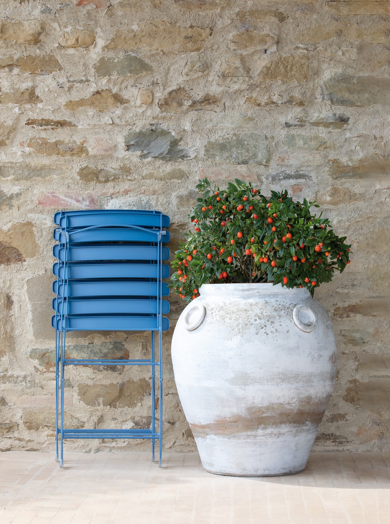 The Step Chair by Vermobil is a compact and versatile folding chair, ideal for casual outdoor dining and portable seating solutions. Crafted from powder coated metal, it combines durability with a lightweight design, making it easy to store and transport. Its simple slatted form embodies timeless Italian craftsmanship, perfectly suited for cafes, patios, and balconies.