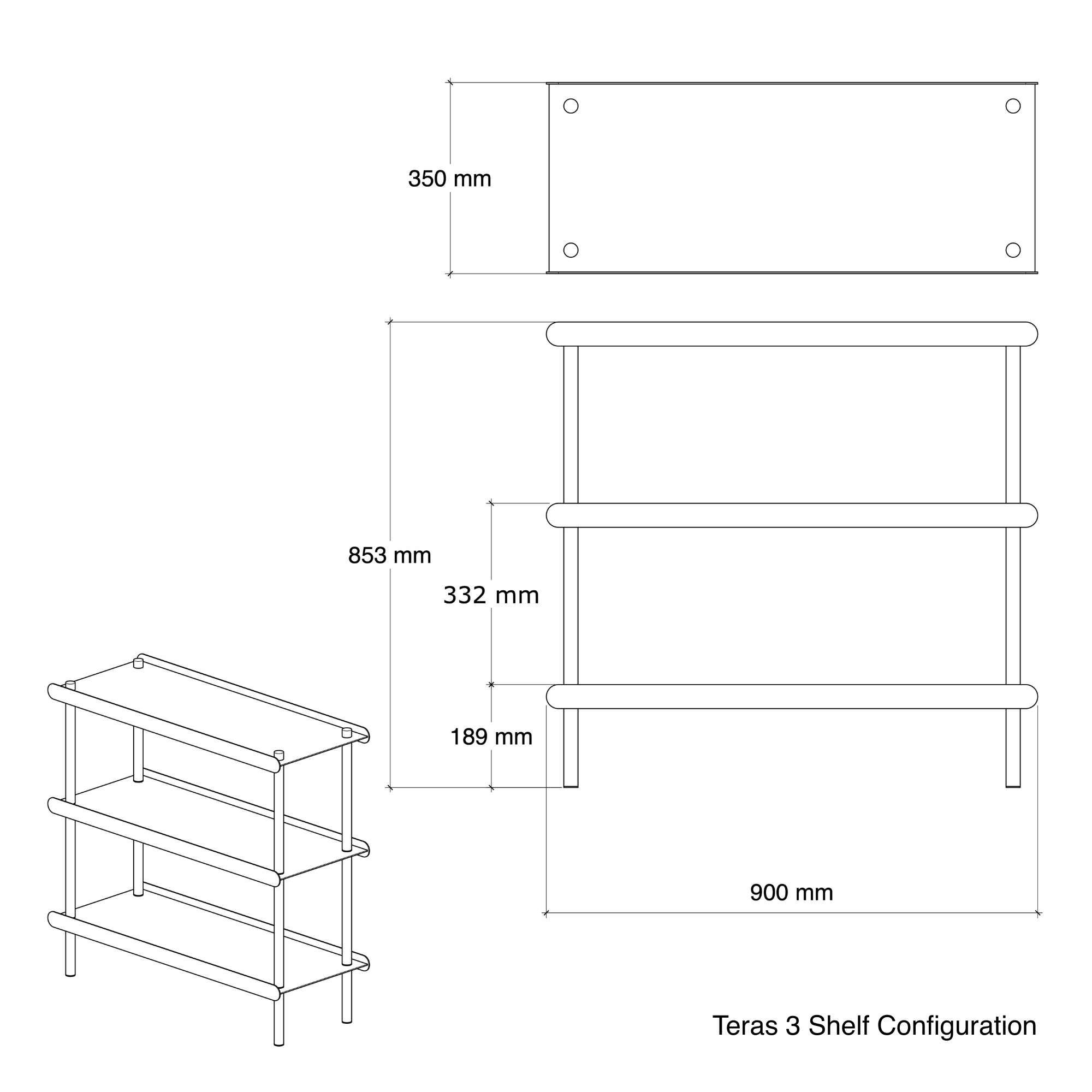 Elevate any internal space with Teras™, a unique and flexible shelving solution consisting of steel terraces (shelves) in 2 sizes and aluminium cylindrical posts in various heights.