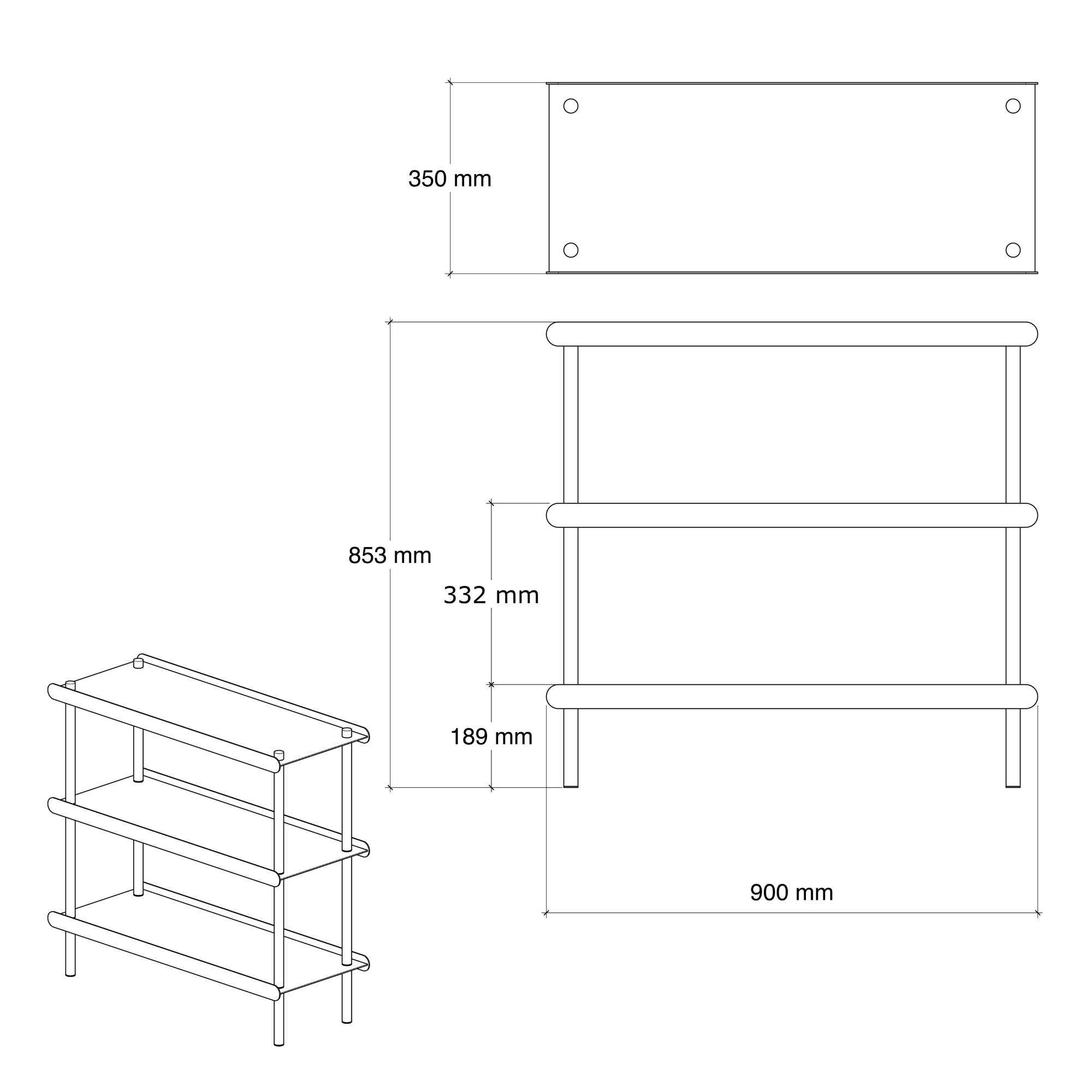 Small Shelf (4 Post Holes) : 900mm L x 350mm D.