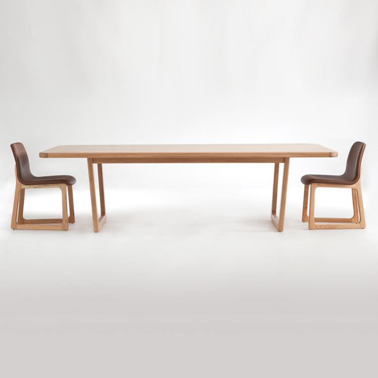 Terra Firma Table by Didier is made in select American Oak these stunning tables and benches are sturdy and functional work partners where the crafted engineering allows for flat pack in transport and ease of onsite assembly with a simple hand tool.