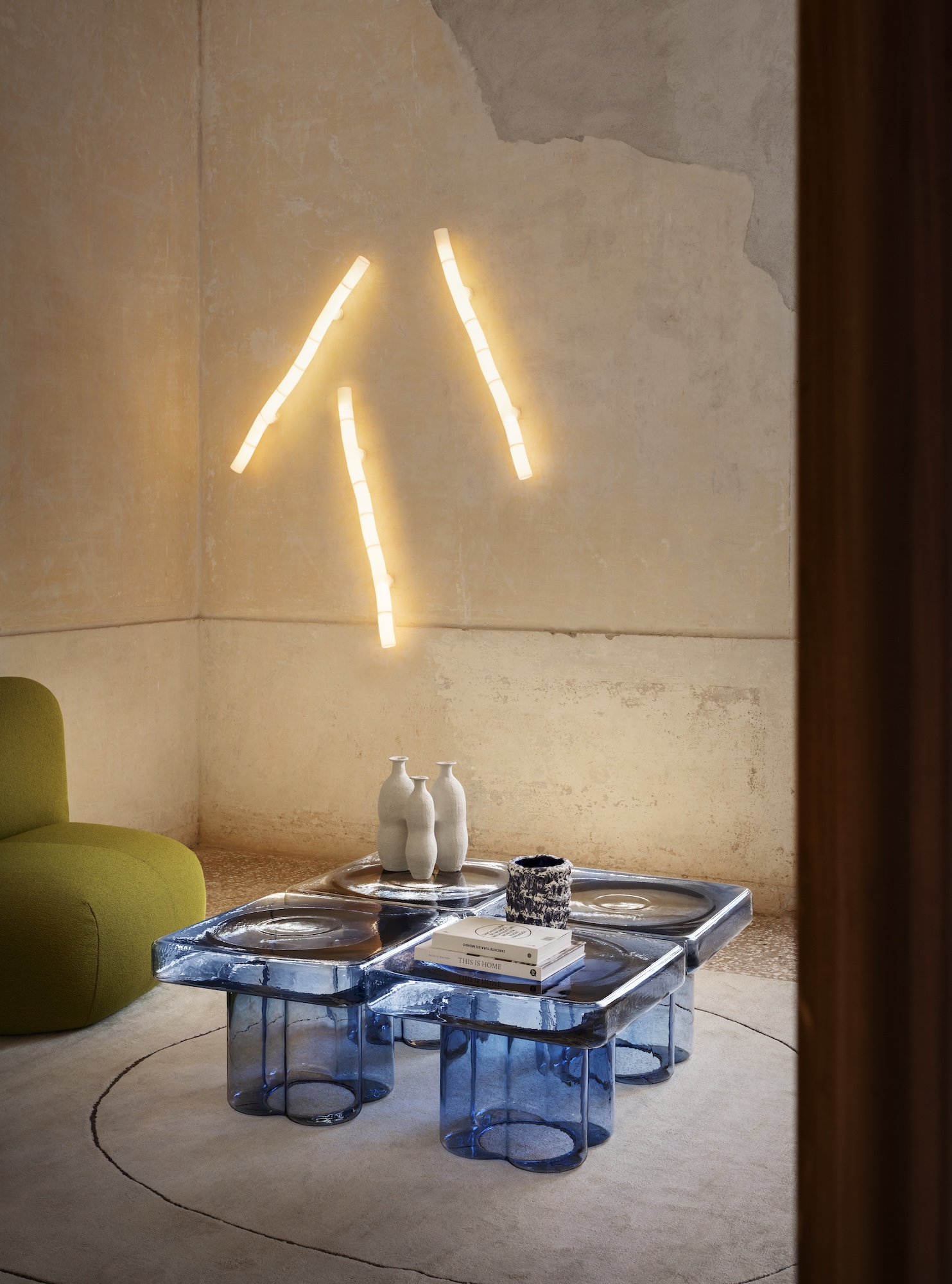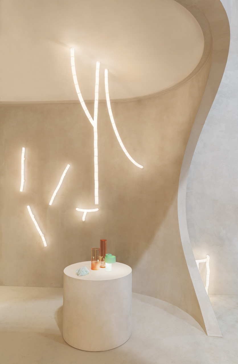 Tratti by TOOY is a scenographic modular lighting system defined by sculptural, deconstructed forms reminiscent of anatomical structures. Produced in 3D-printed nylon powder with a slightly grainy white finish, each piece emits a soft, diffused glow that highlights its organic geometry.