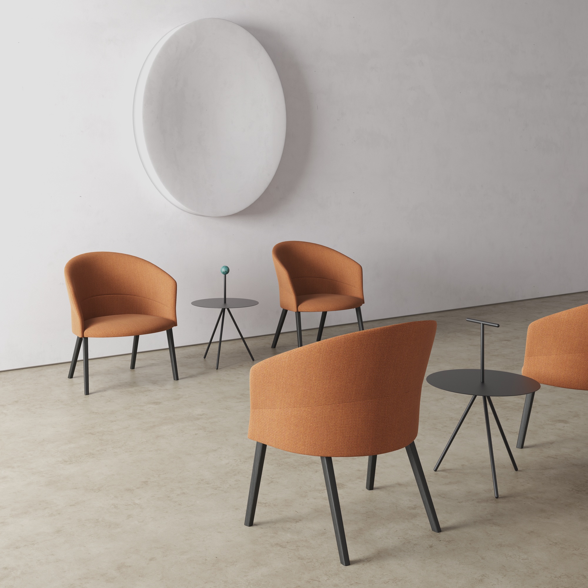 Trino by Viccarbe is a sculptural design defined by its calibrated steel structure and refined detailing. Its powder-coated frame offers a durable yet elegant presence, complemented by distinctive solid oak or marble accents that introduce natural texture and subtle contrast.