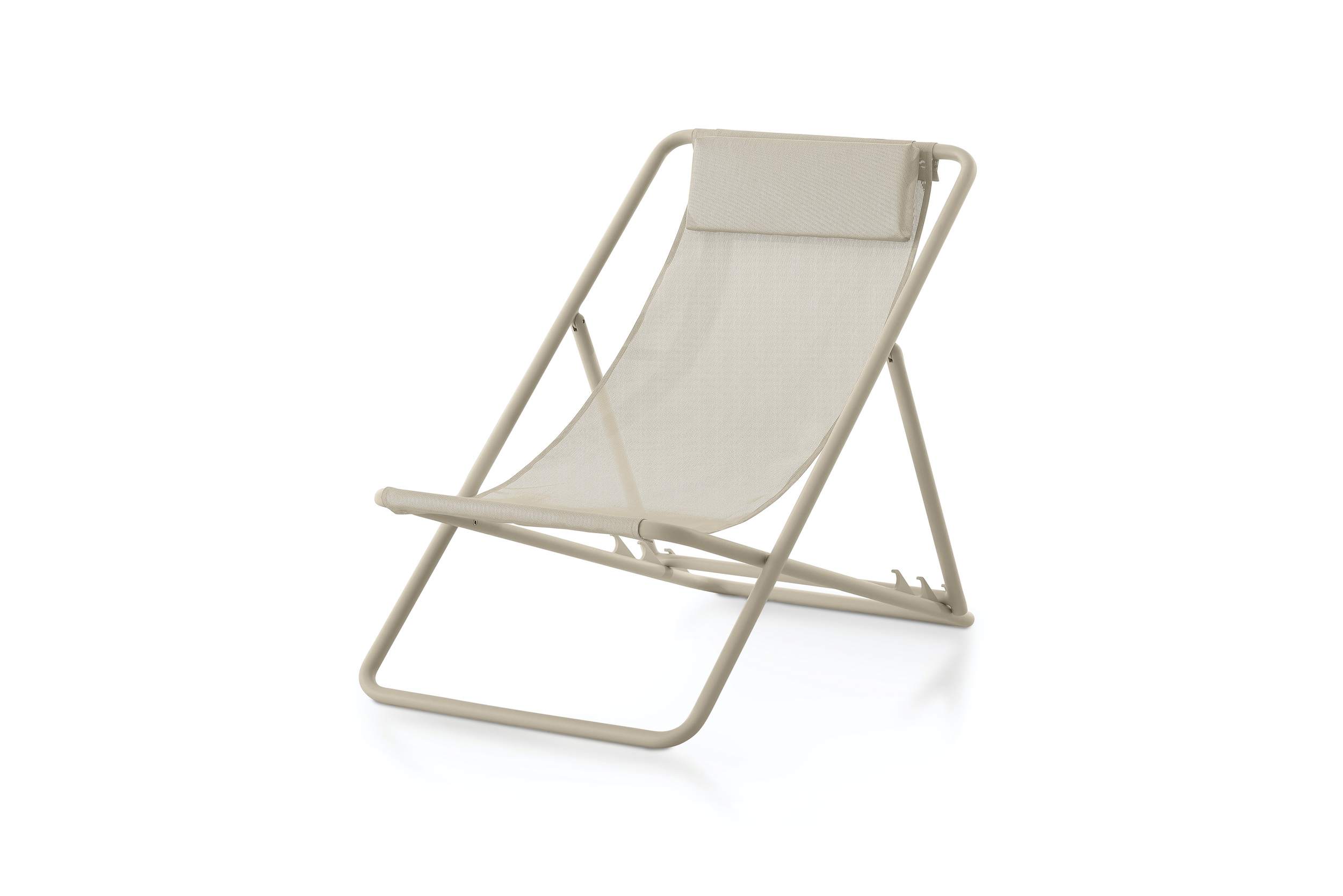 This reclining and lightweight chair is the best company for a relaxing day outdoors. With its comfortable headrest cushion and three different positions, disconnecting from the rest of the world is ensured. You can take it to the beach or the countryside, place it next to the pool or on a terrace, or even an urban balcony. It is the perfect chair to rest, read or clear your mind while looking at the horizon.