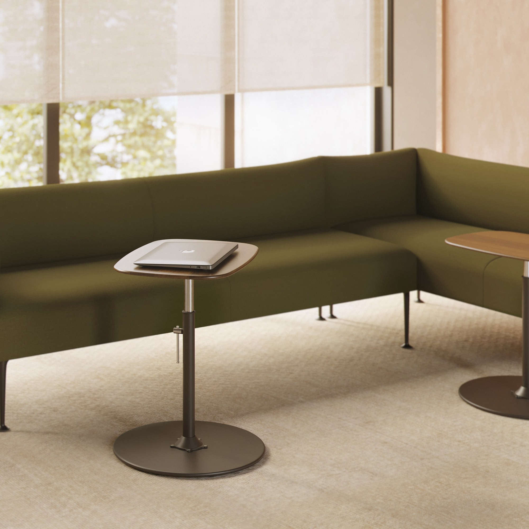Vetona Side Table by Viccarbe is a refined piece defined by its elegant proportions and versatile height adjustment. Crafted with a metal structure and a choice of compact laminate or finger-jointed solid oak tabletops, it balances tactile sophistication with practical adaptability.