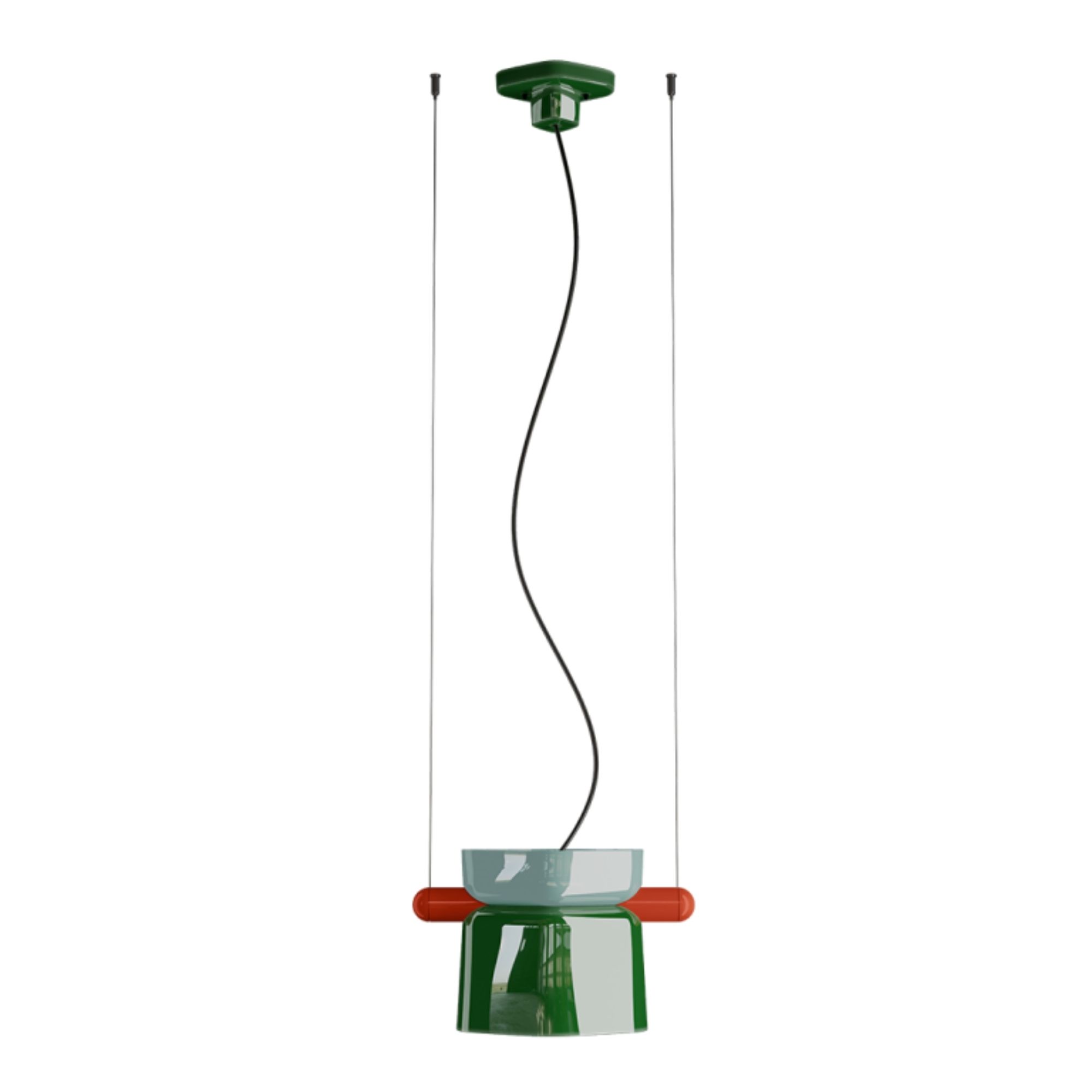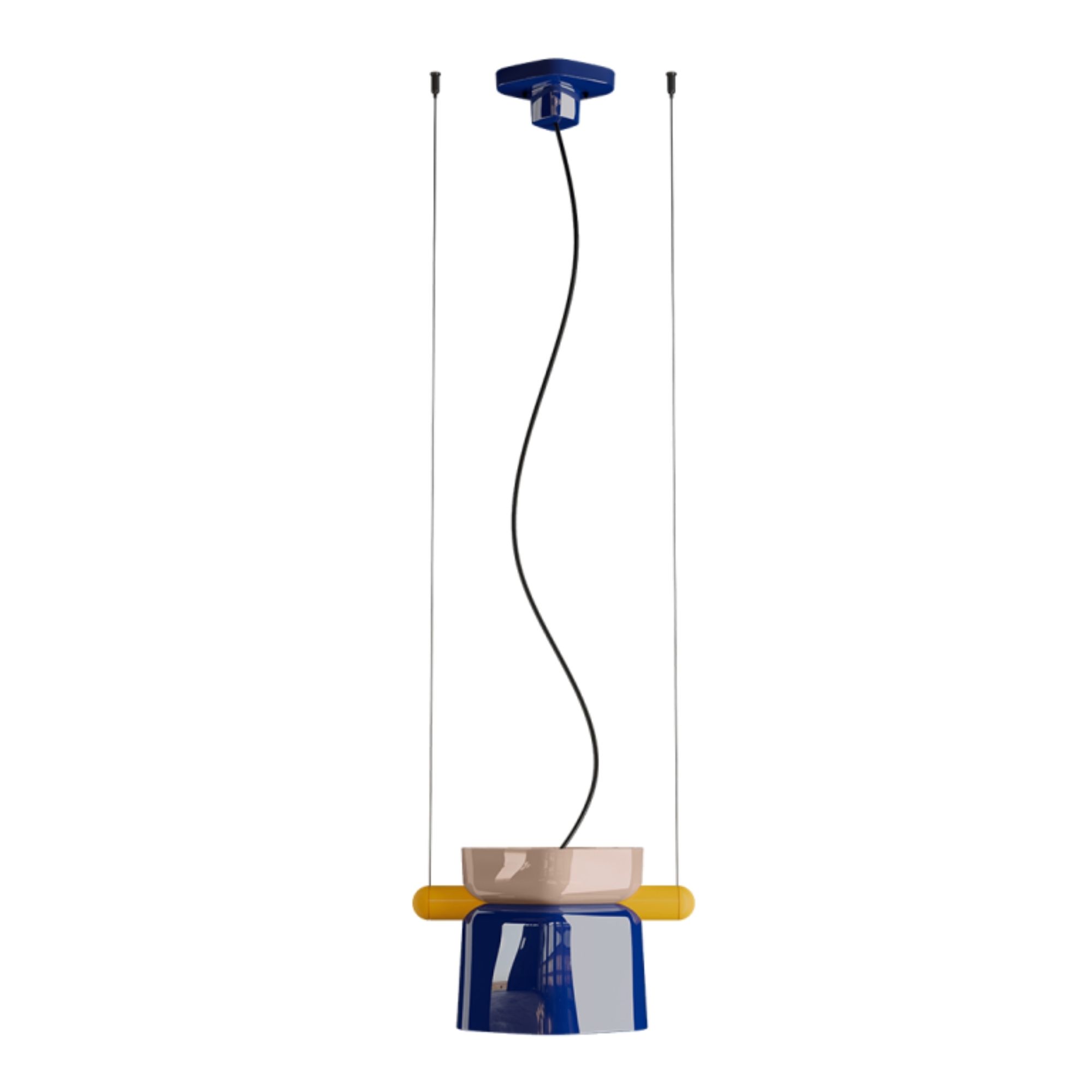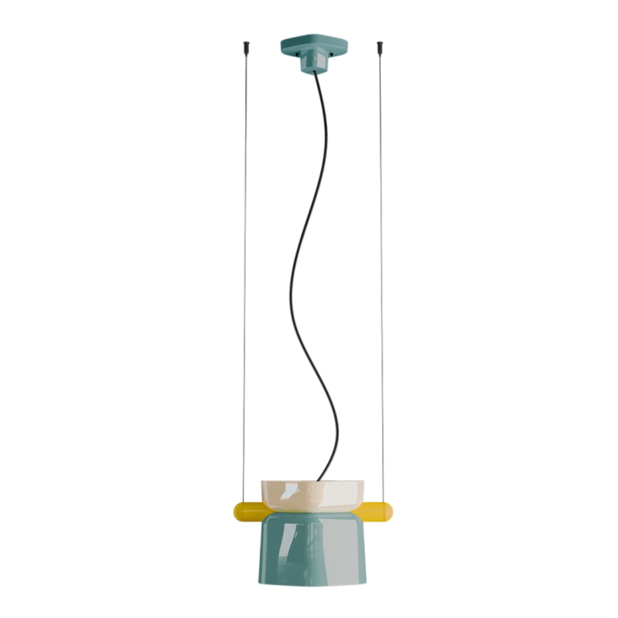 Yakitori Single Pendant by Ferroluce channels the convivial energy of Japanese street food culture. Its ceramic elements, suspended as though stacked on a skewer, recall the bustling atmosphere of markets, full of colour, rhythm and life. Each piece clips to a contrasting metal bar, creating a sculptural composition that feels both playful and refined.