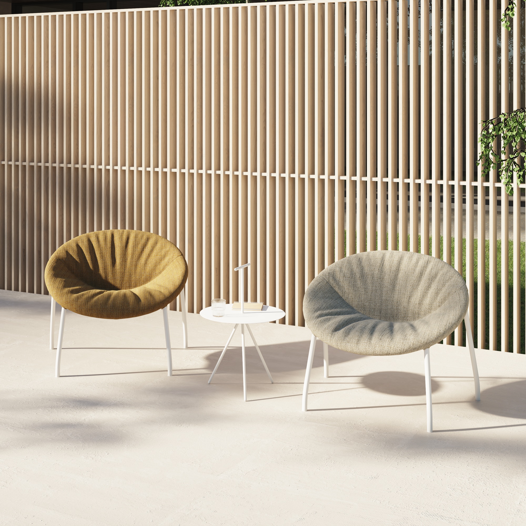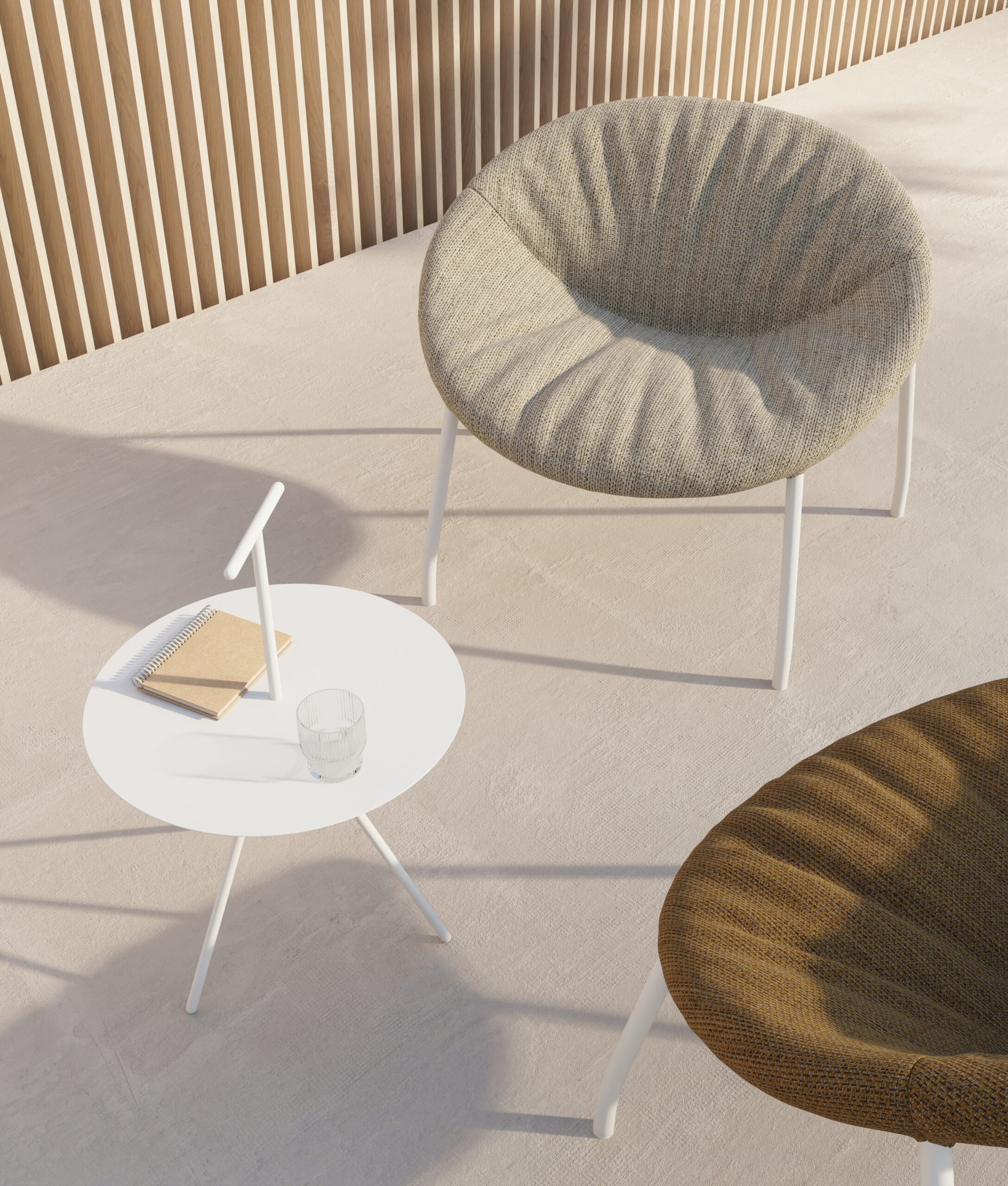 This design invites relaxed elegance, embodying the thoughtful innovation and timeless appeal characteristic of Viccarbe’s outdoor collection.