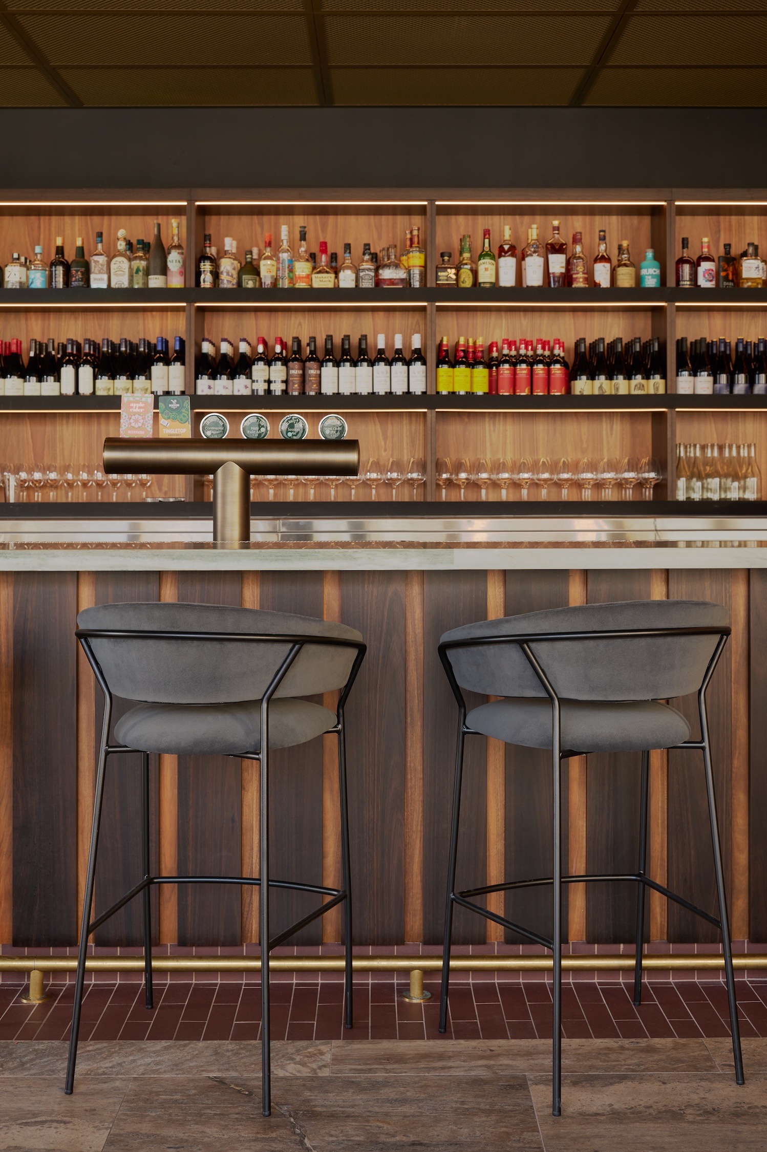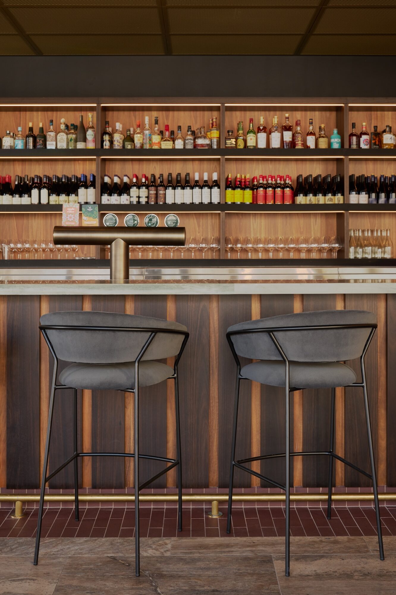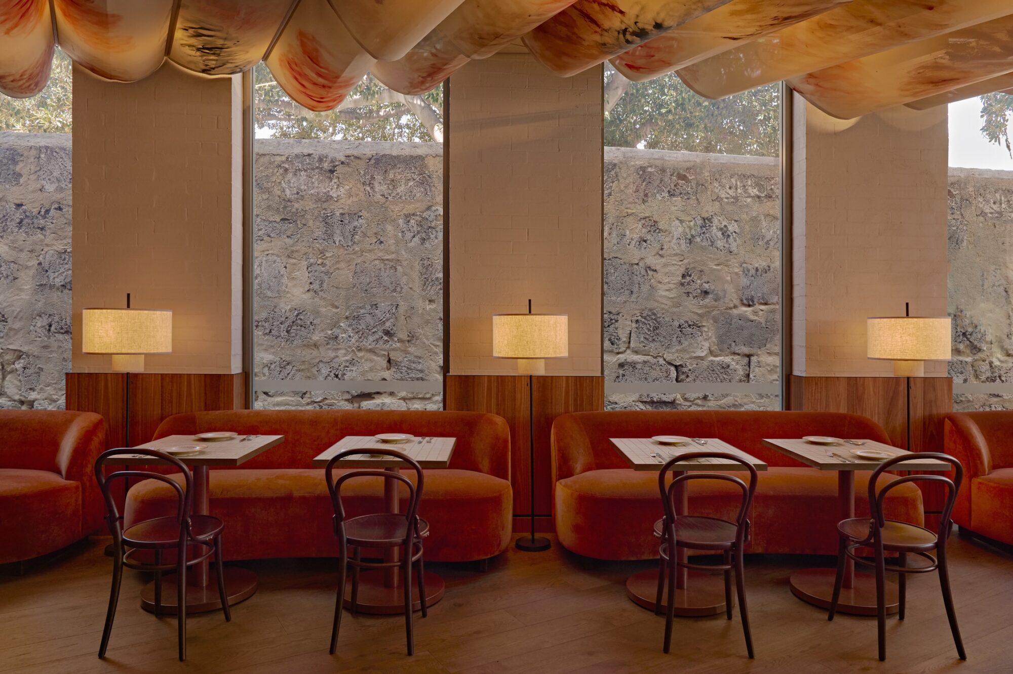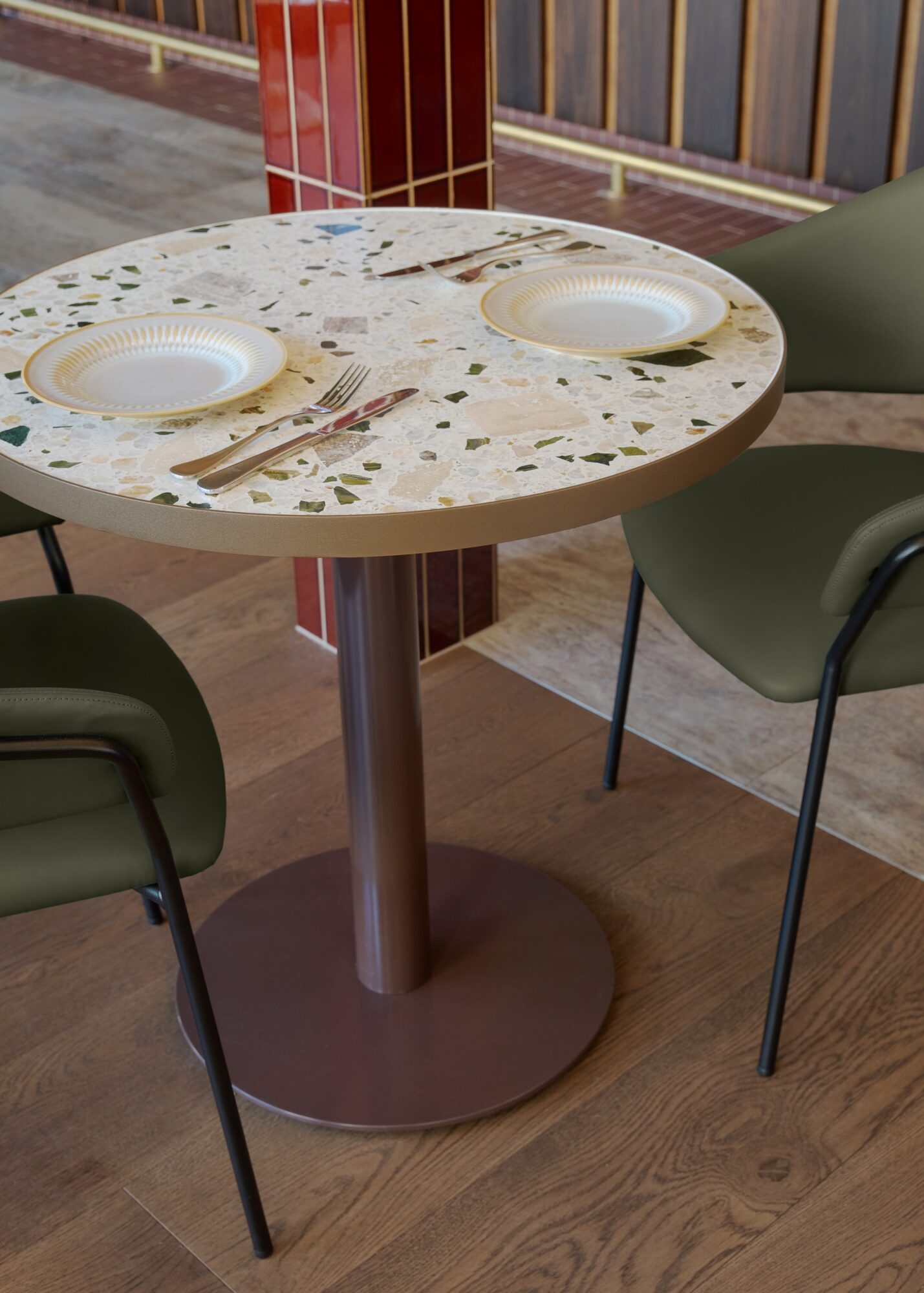The Pedrali Jazz 3716 chair and Jazz 3717/3718 stool and Ton 14 Chair were selected for their curvaceous shape, comfort and rich tones, were paired alongside our NOROCK Lunar Tables.