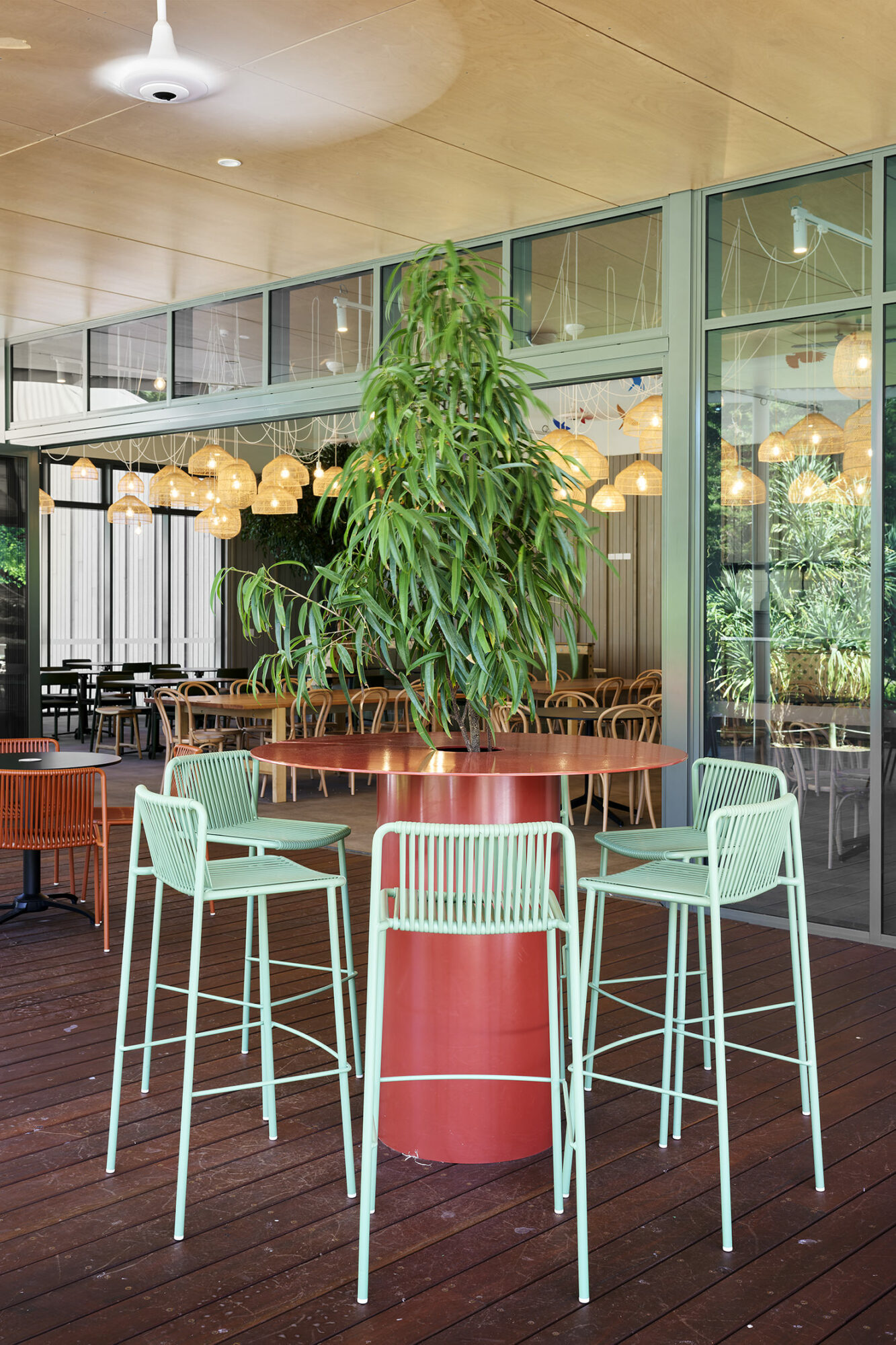 On the outdoor deck area, pops of colour were introduced to bring life and excitement alongside surrounding playground area. Terracotta and Green Tribeca Chair and Tribeca Stools, Panarea Chairs, and Plus Air Chairs by Pedrali worked brightly around the Norock Terrace Flip tables and custom made Cassini Bar Planter Table by Imposter.